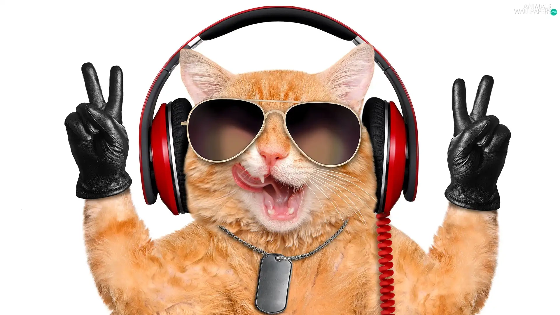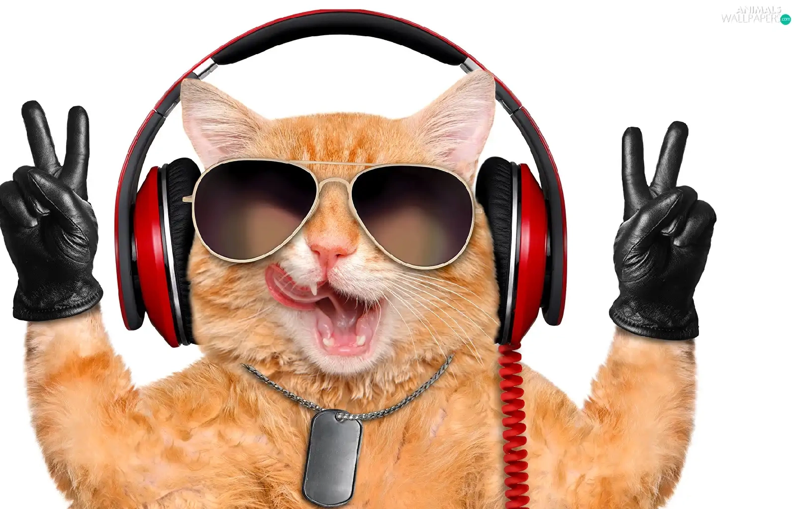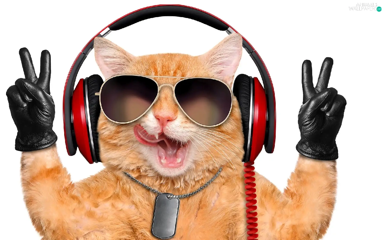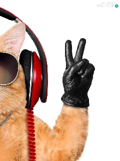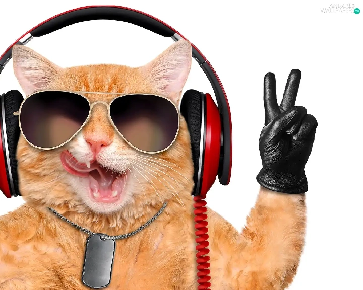 cat, Glasses, glove, HEADPHONES