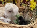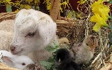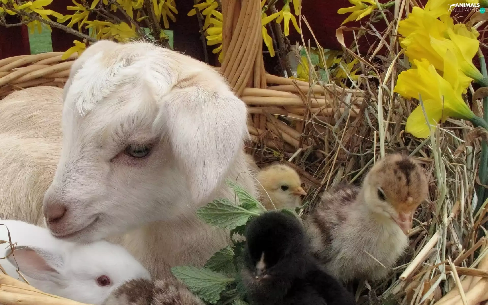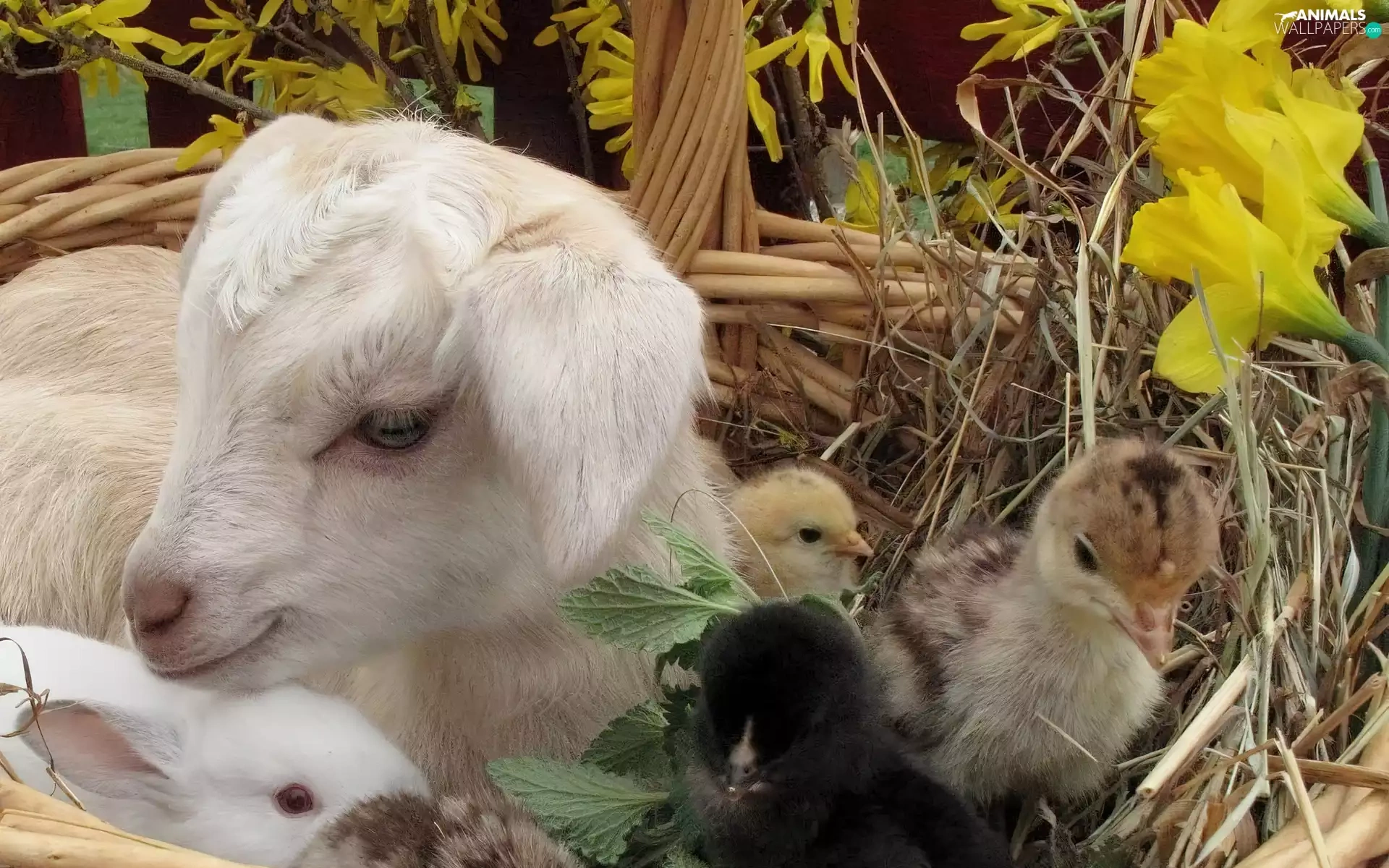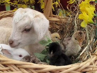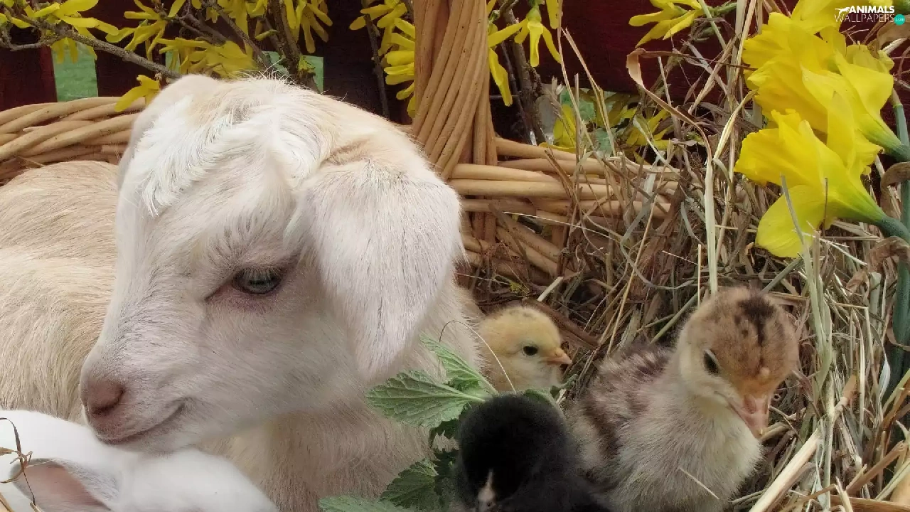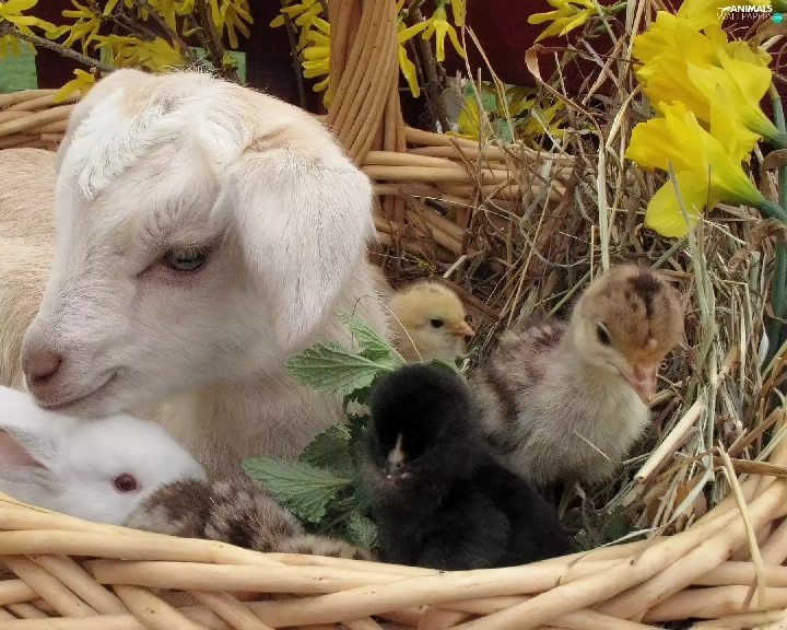 small, Bunny, chickens, goat