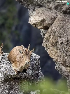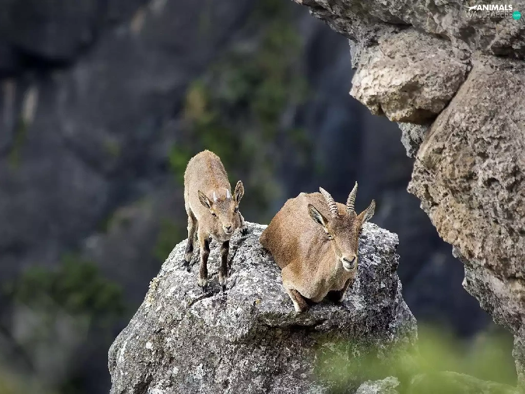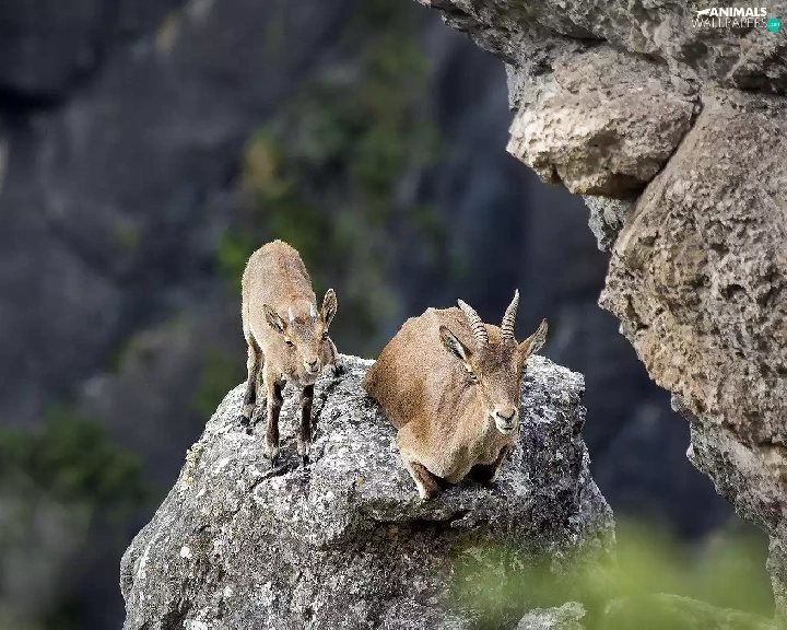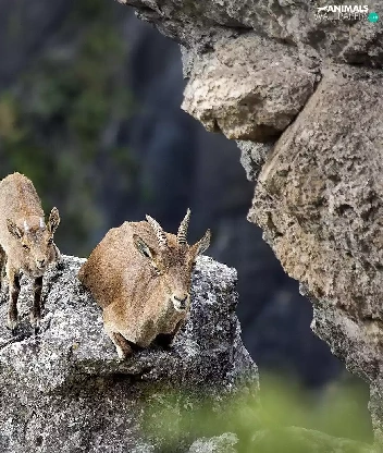 Goats, rocks