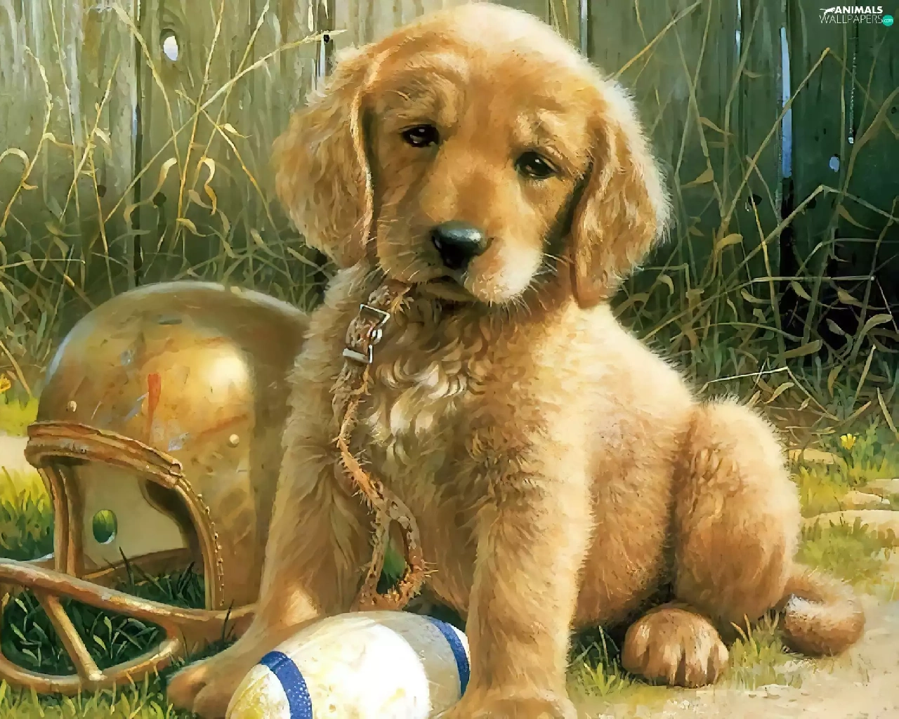 Leash, Ball, Puppy, Golden Retriever, dog