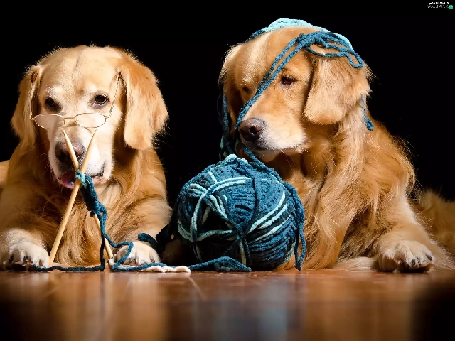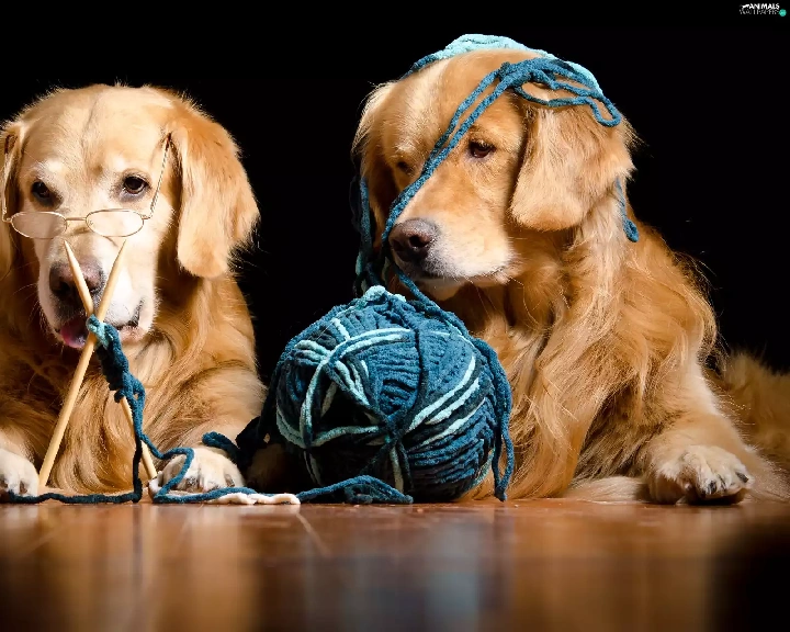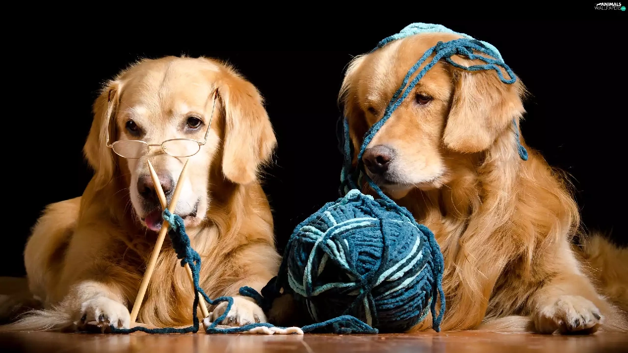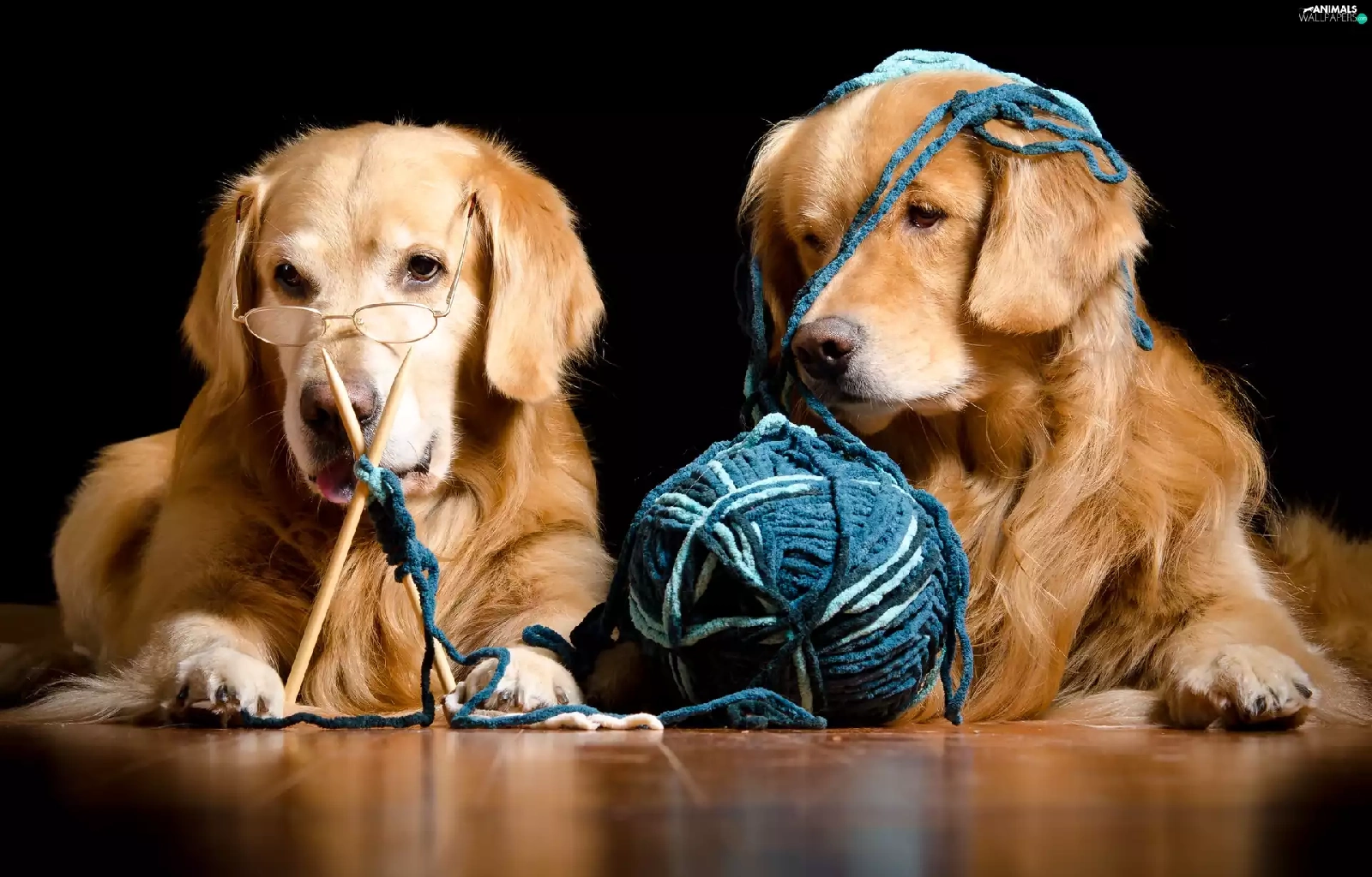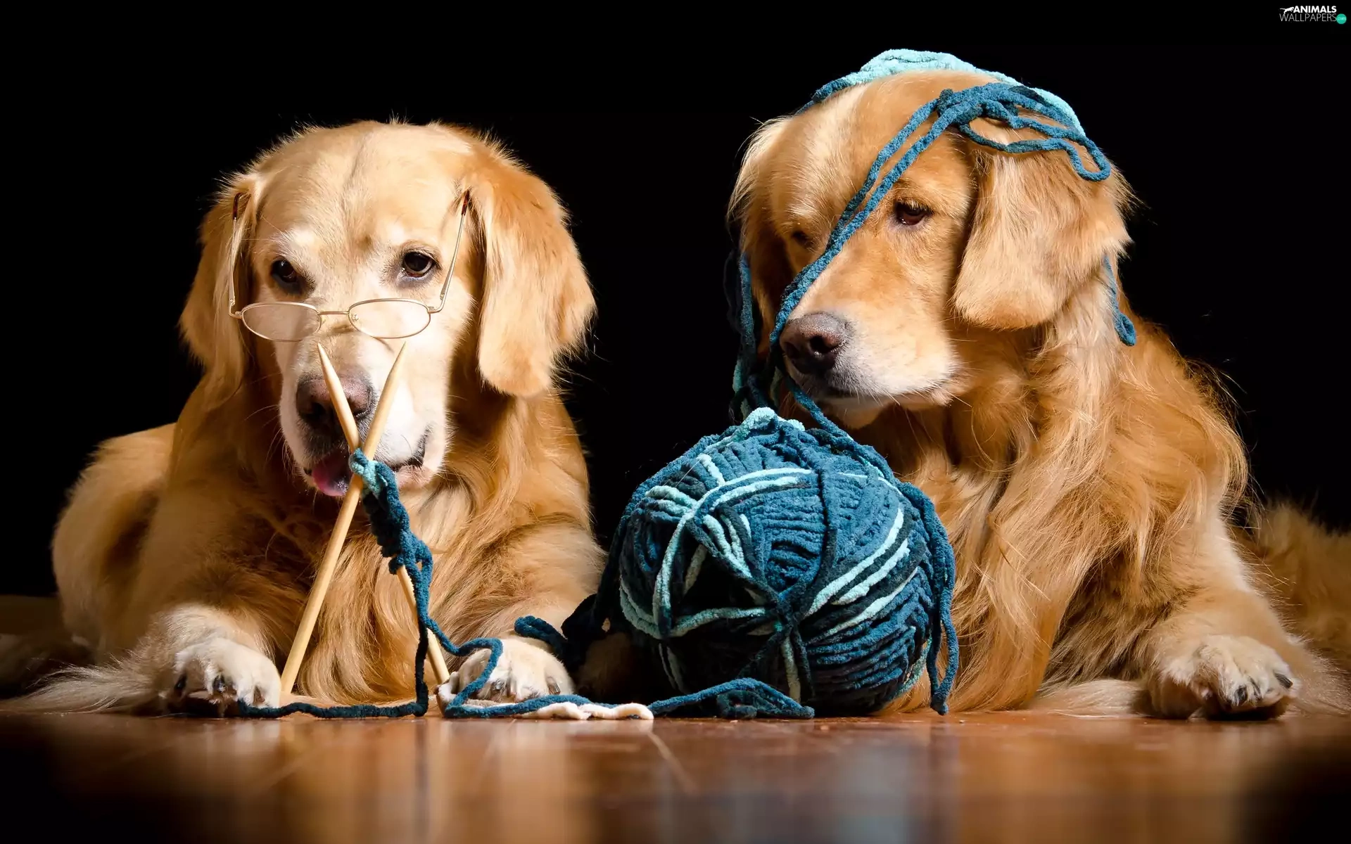 Glasses, drag, Dogs, Golden Retrievery, Two cars