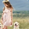 Meadow, girl, Dogs, Golden Retriever, summer, wreath