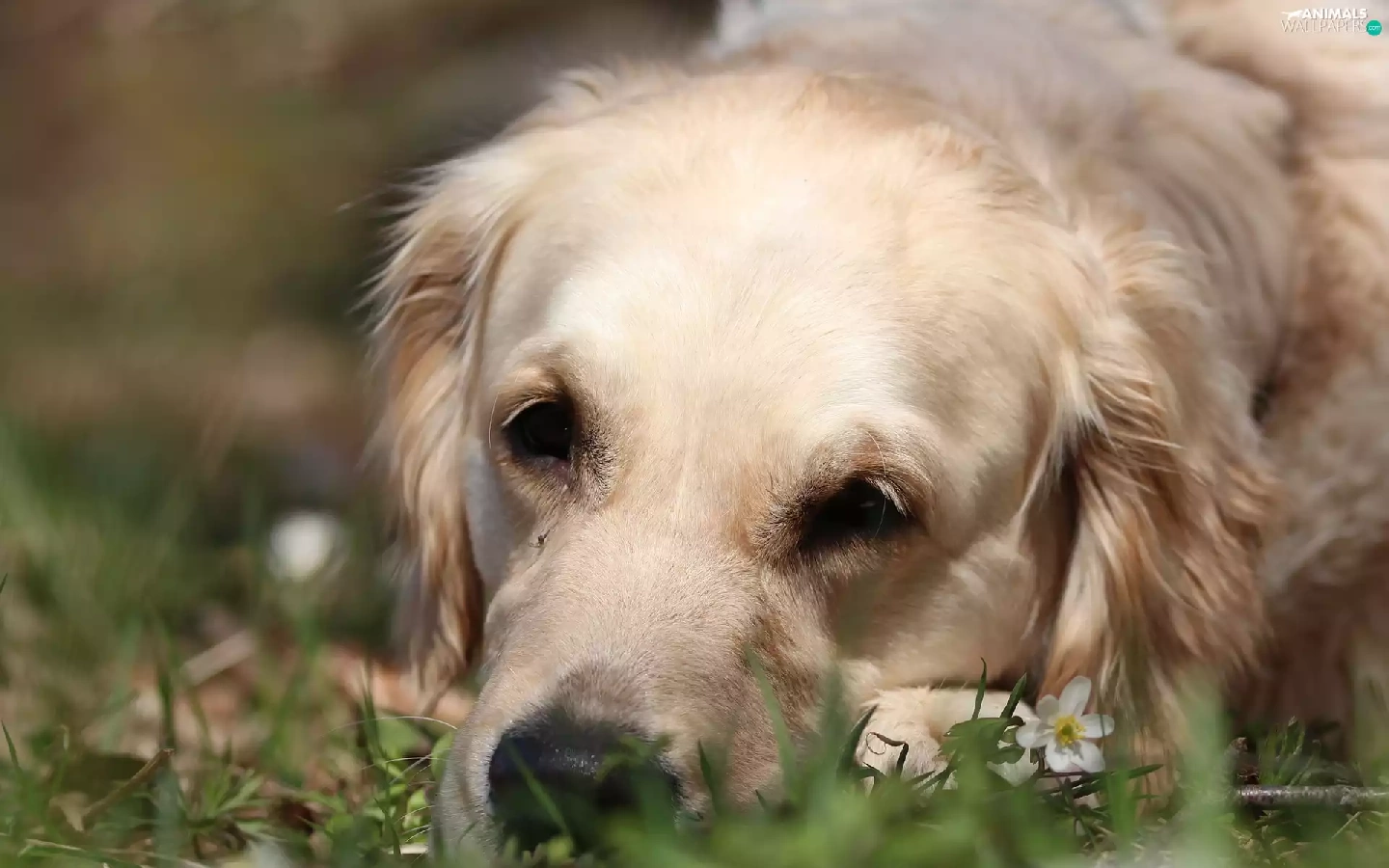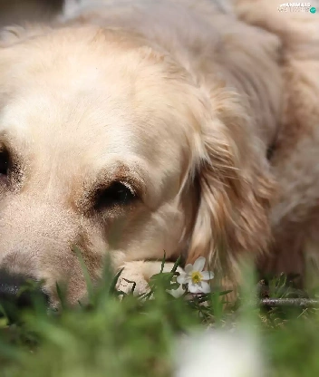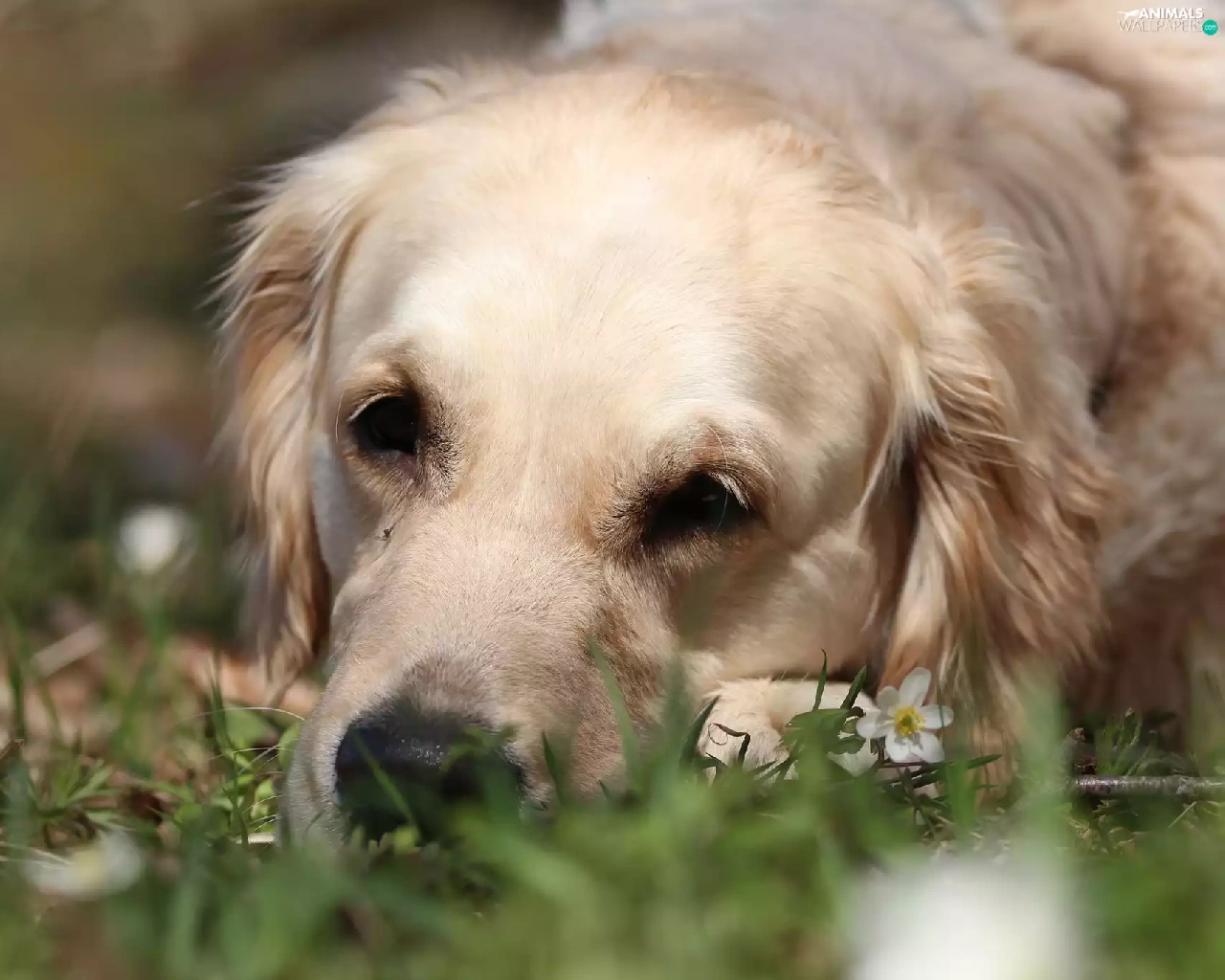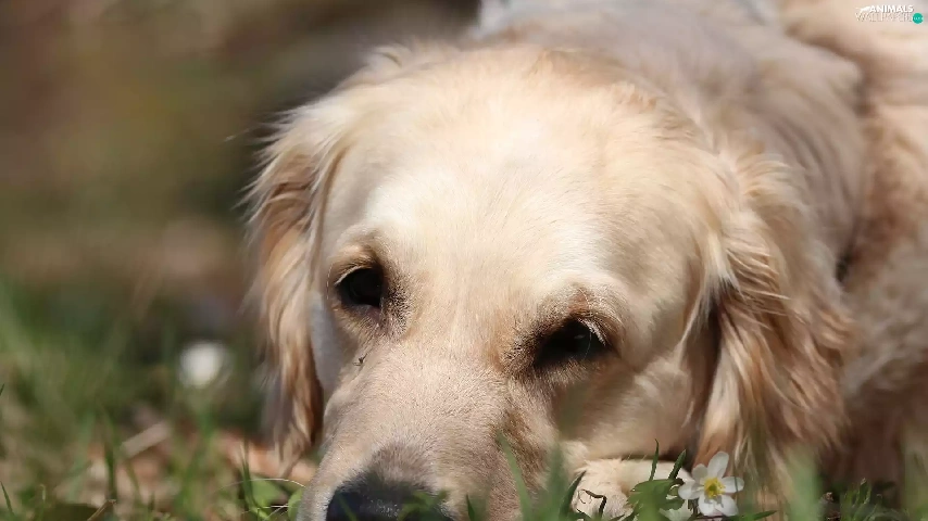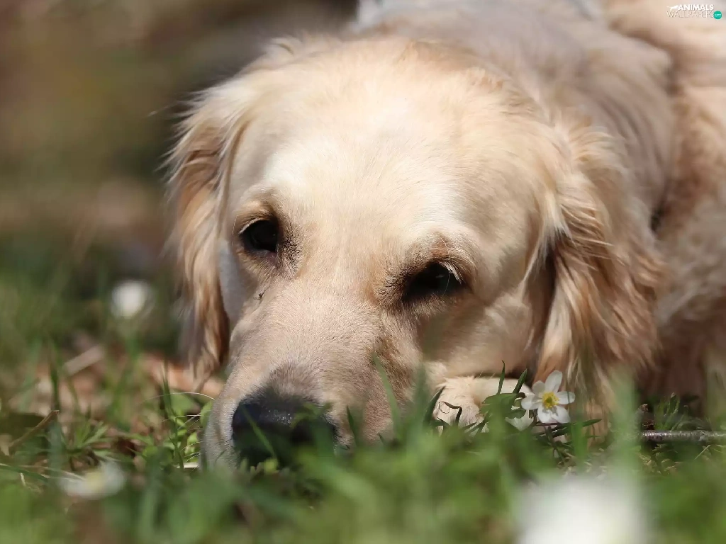 White, Golden Retriever, grass, dog
