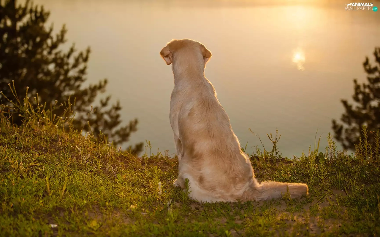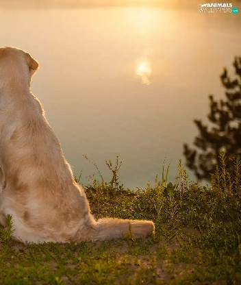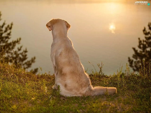 sitter, Golden Retriever, lake, dog