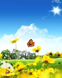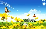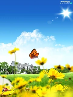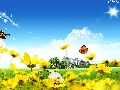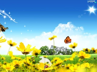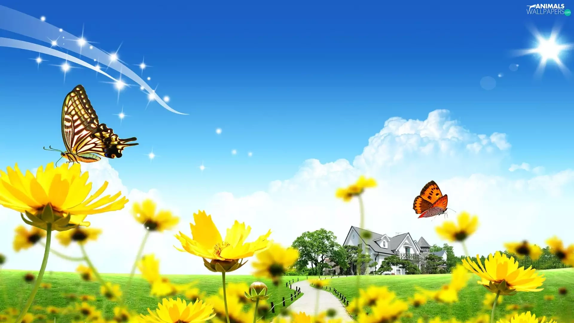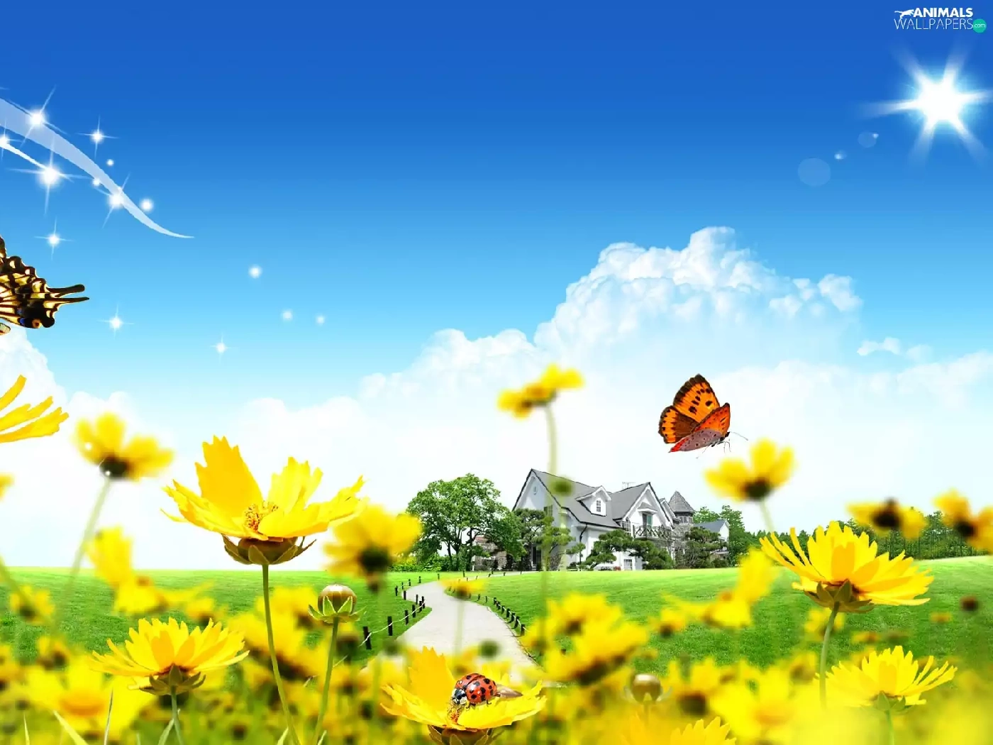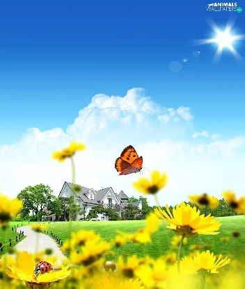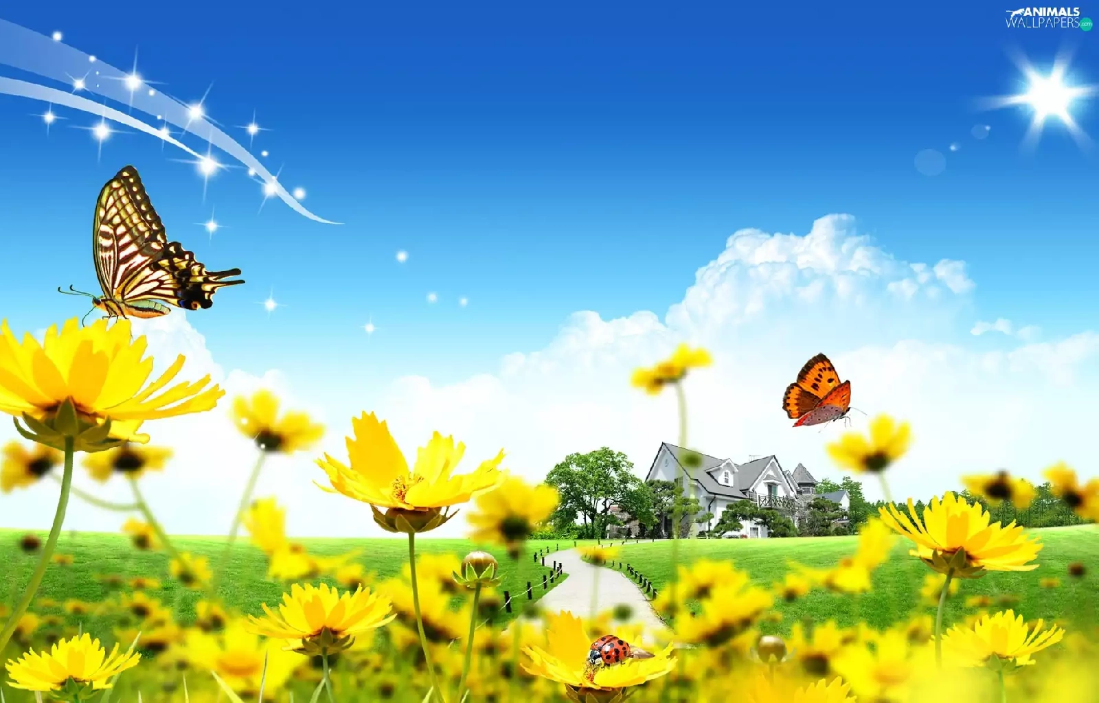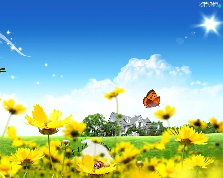 butterfly, Ladybug 2D Graphic, Yellow, Flowers, Spring