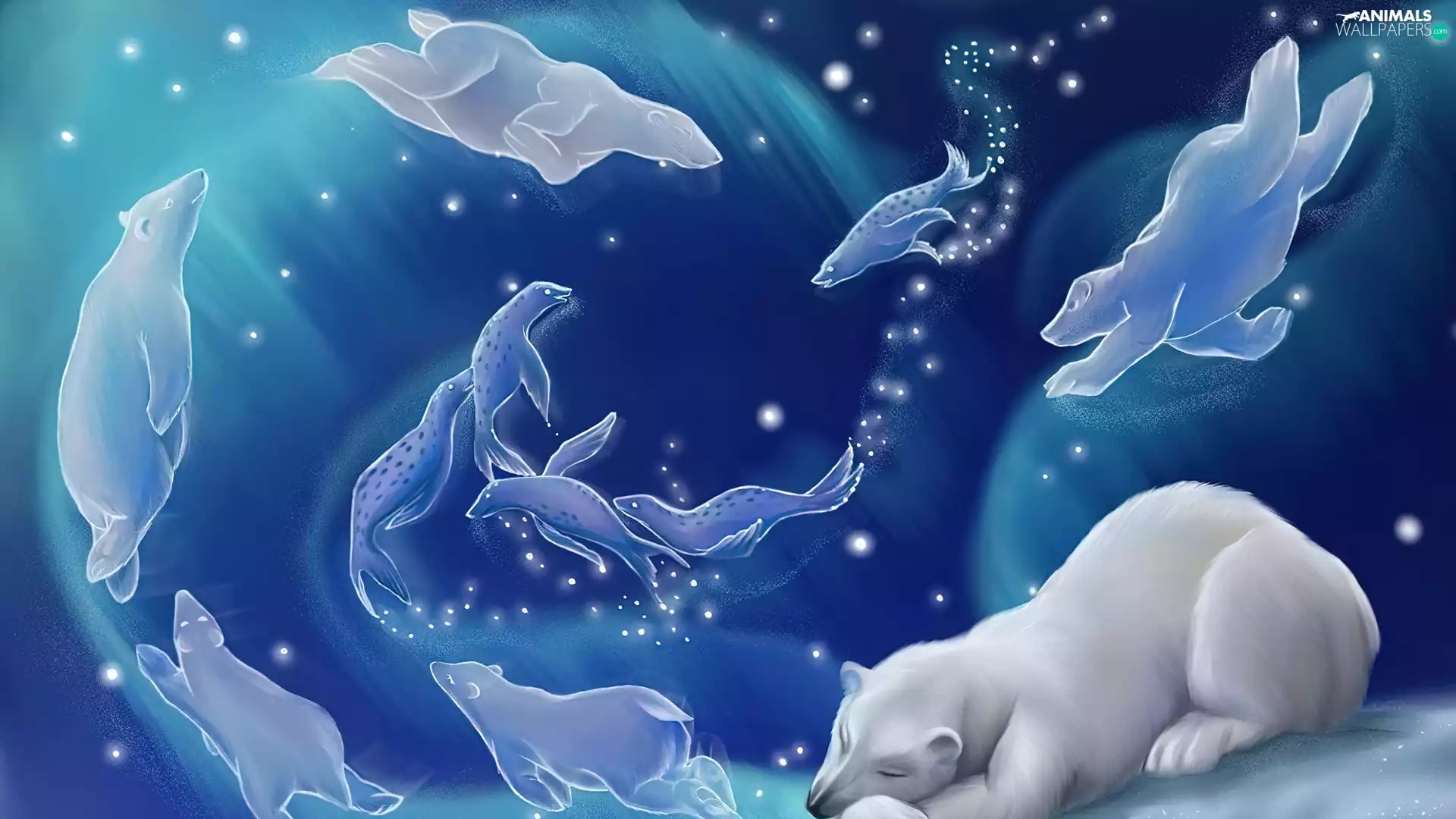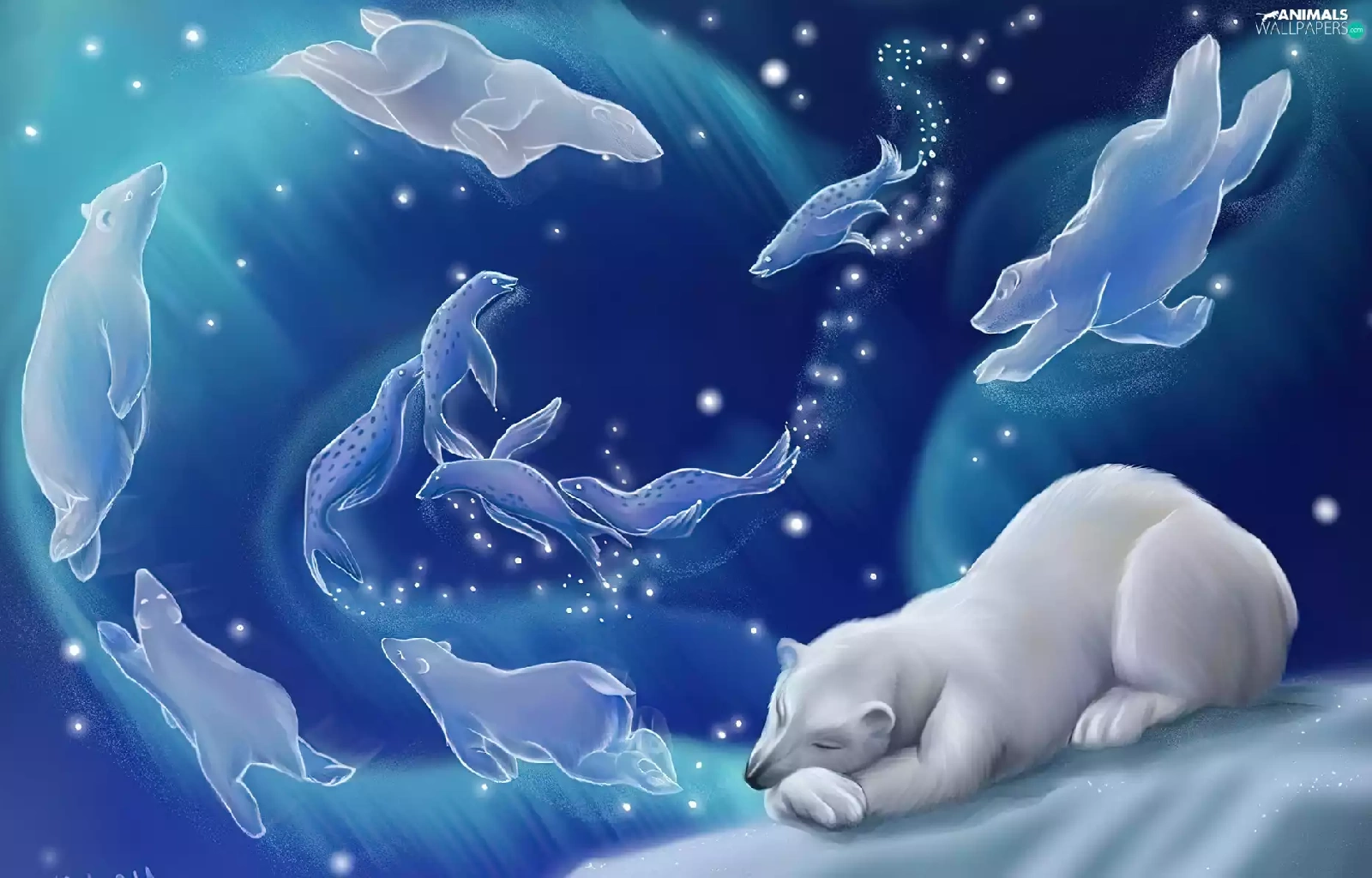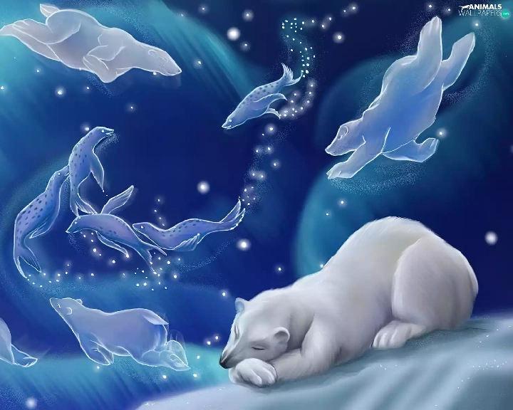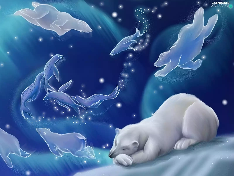 dream, graphics, Bear, polar, sleepy