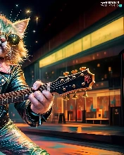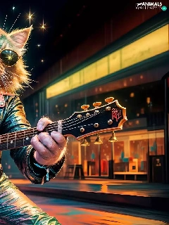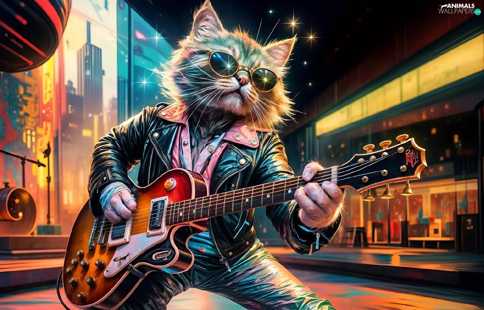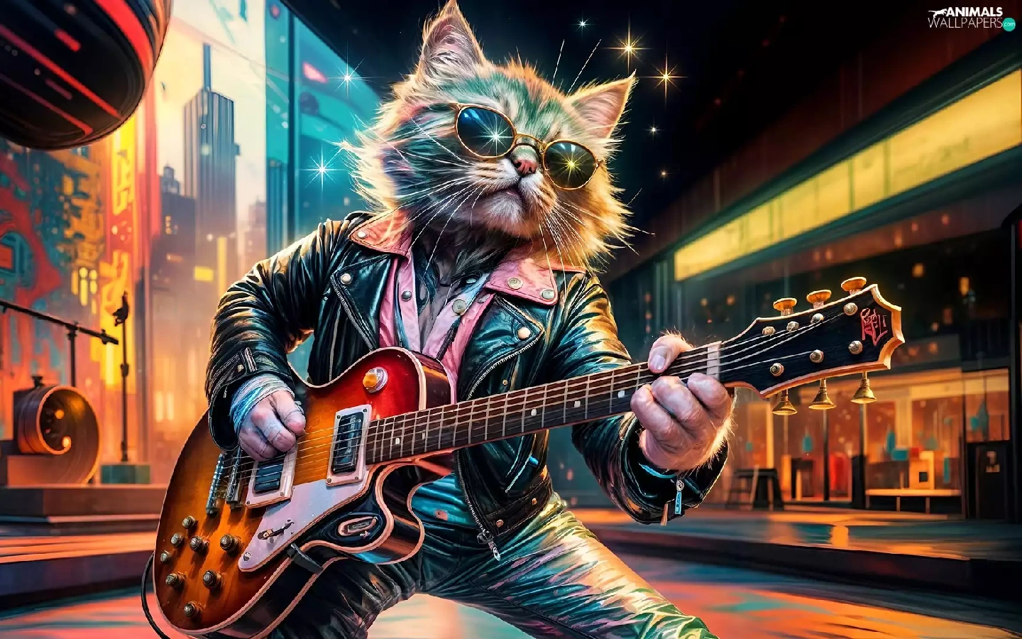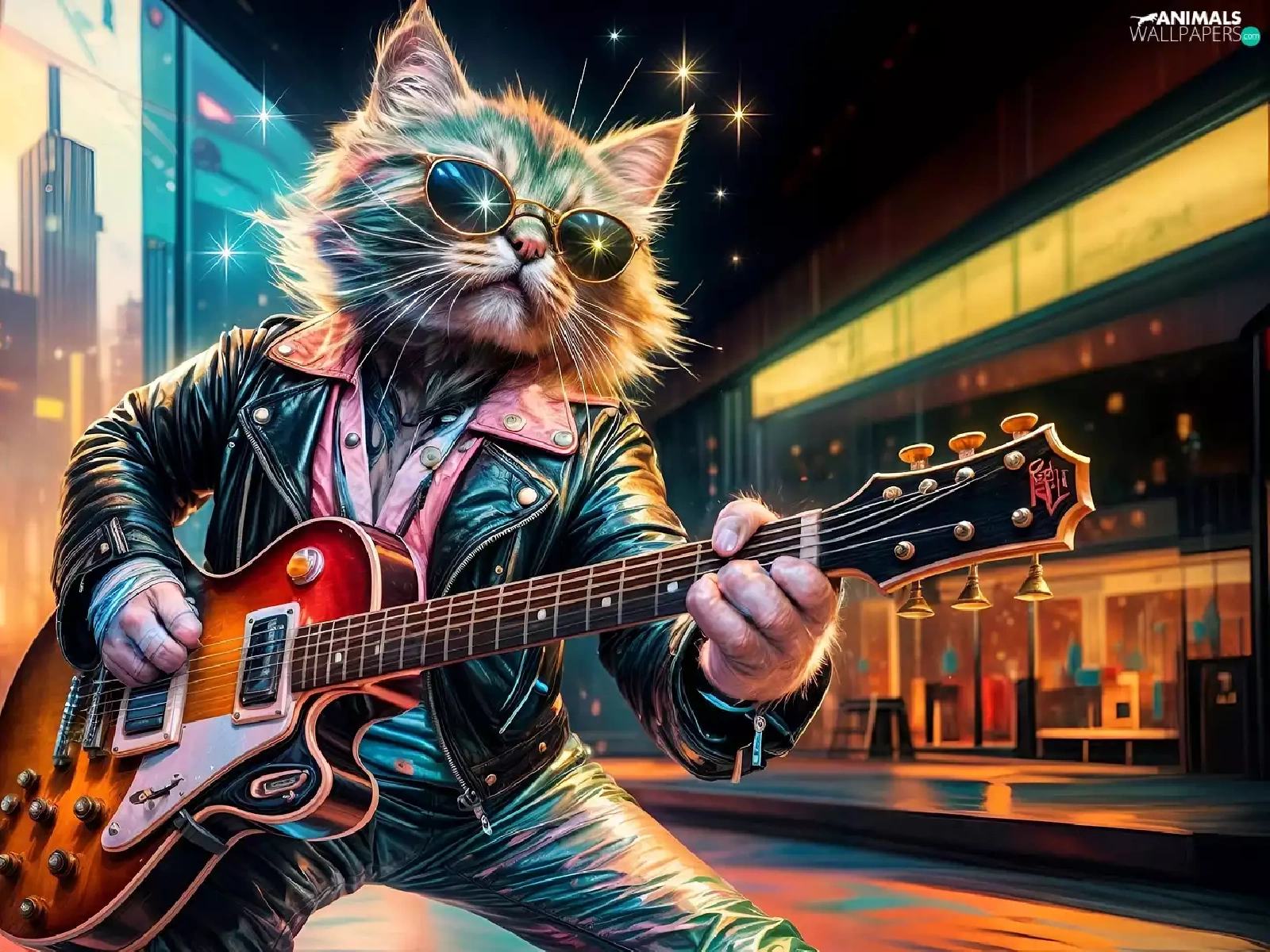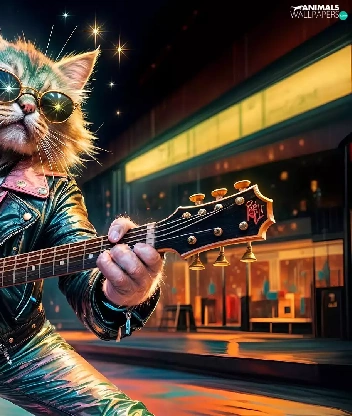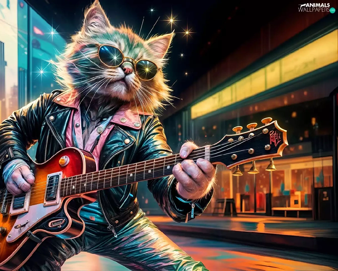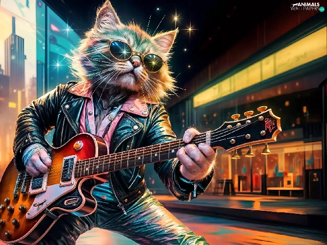 Guitar, cat, Jacked, graphics, Leather, Glasses