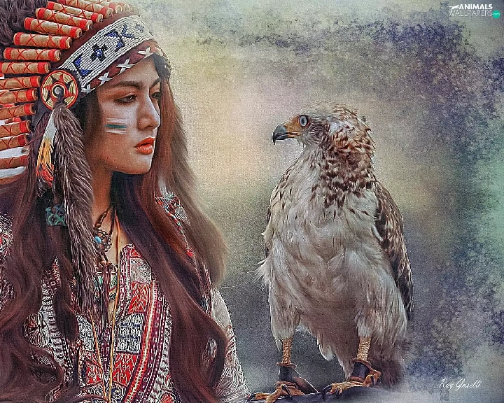 plume, Women, falcon, graphics, Bird, Indian