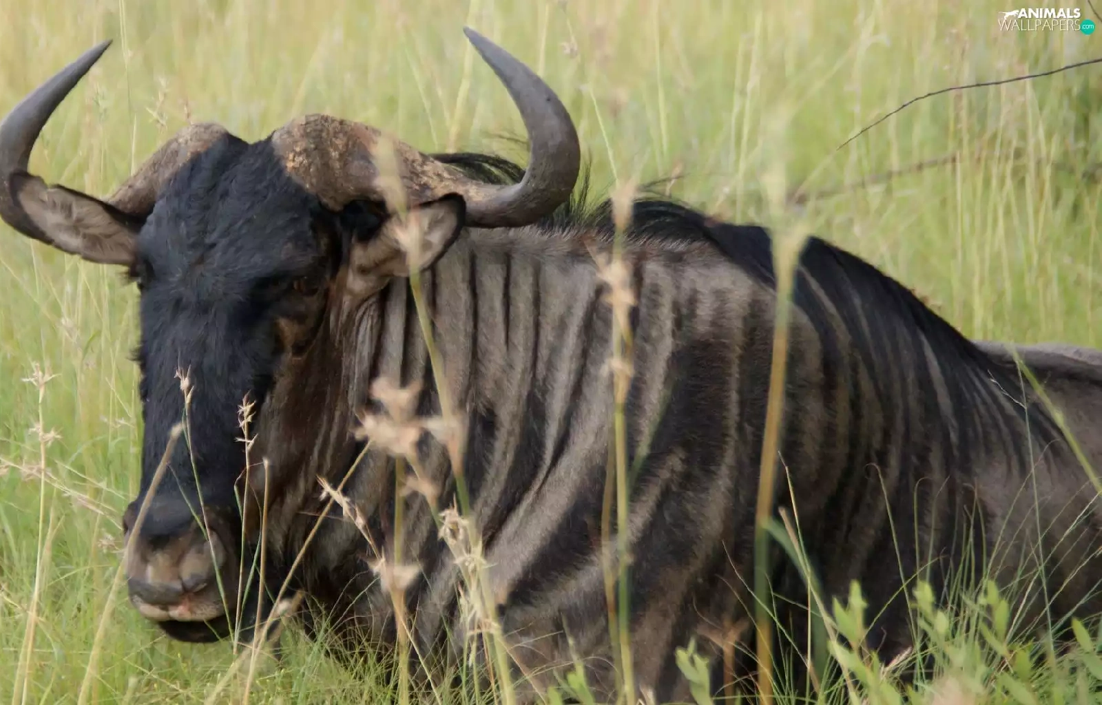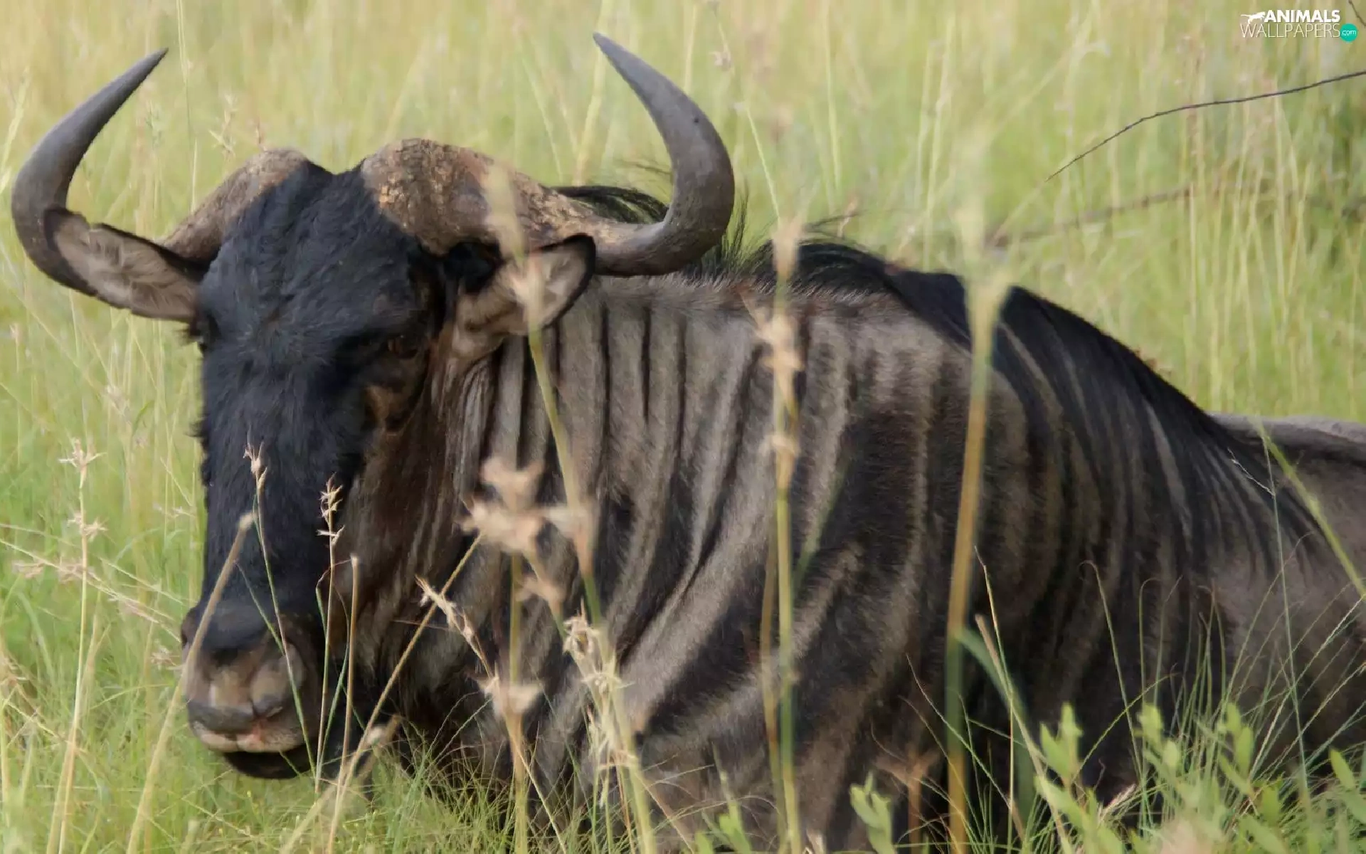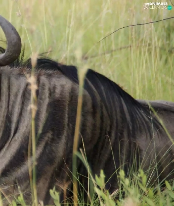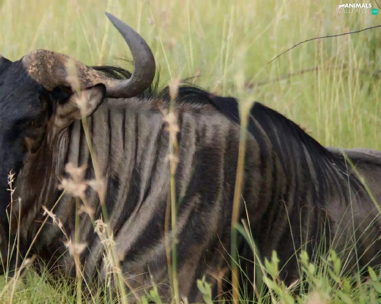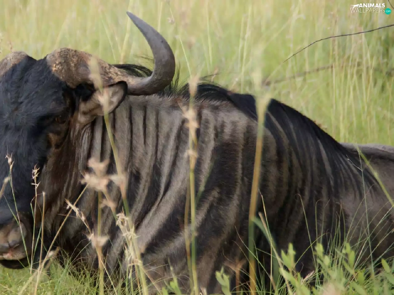 grass, wildebeest, Antelope