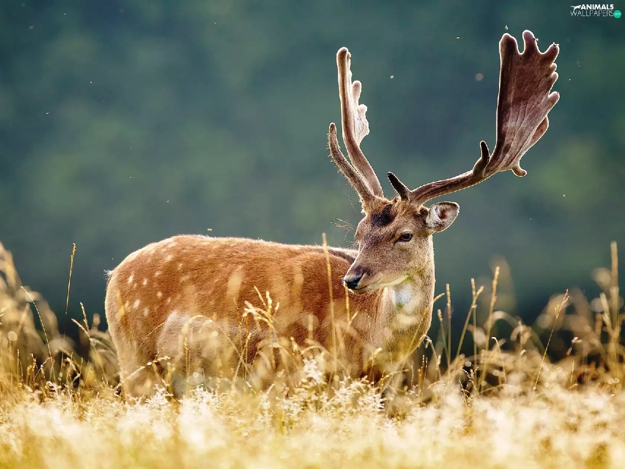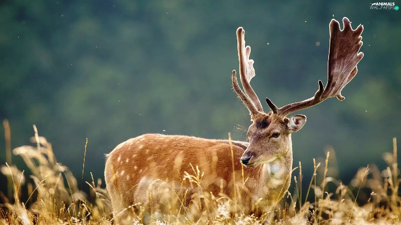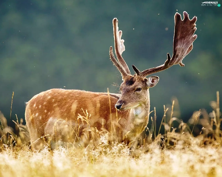 grass, deer, antlers