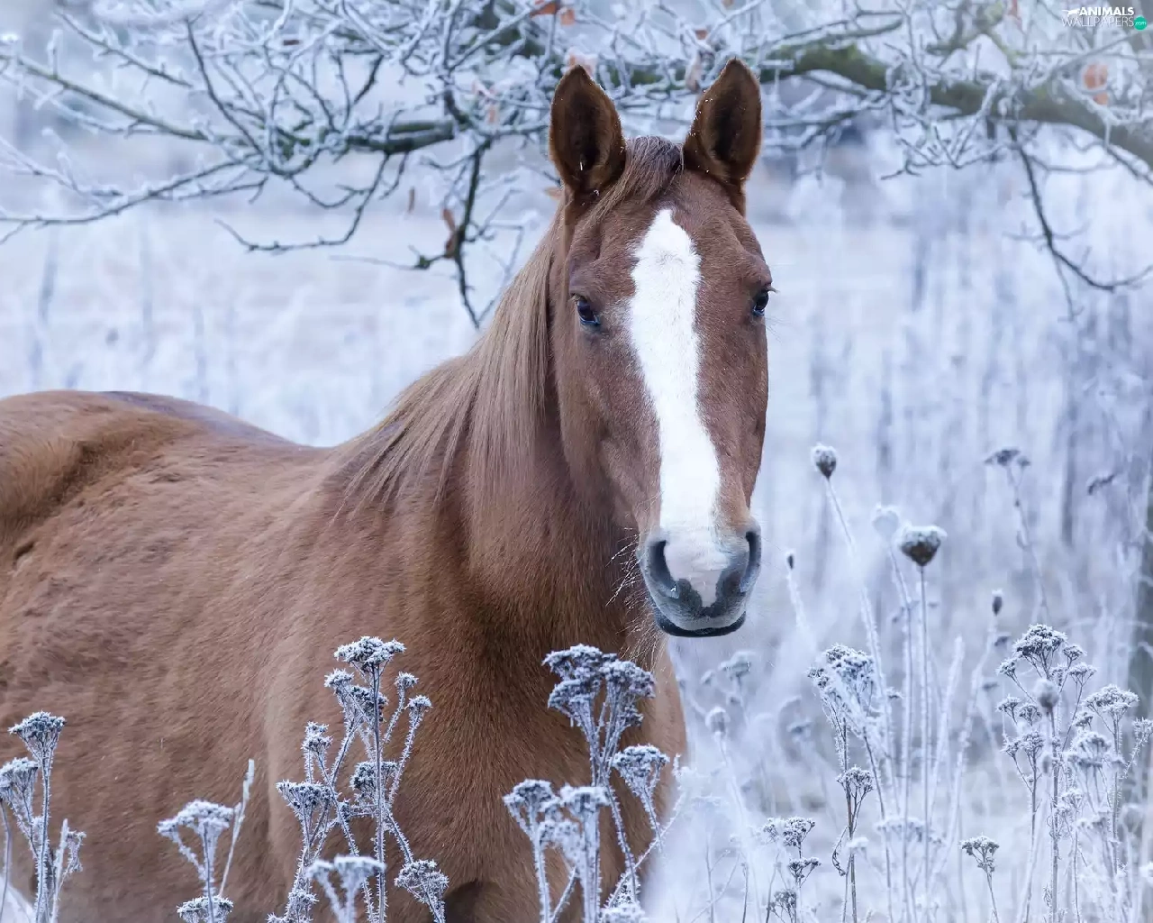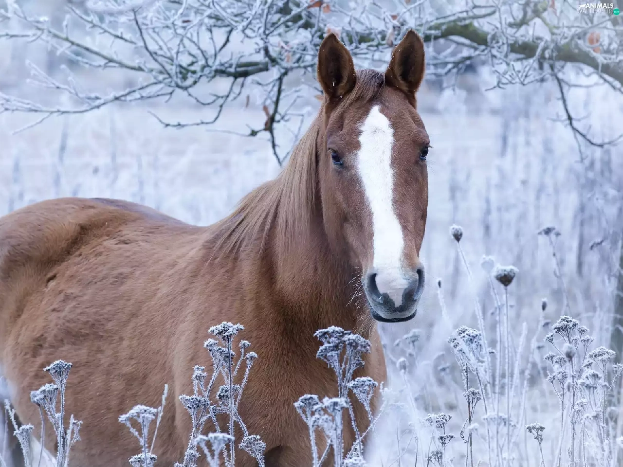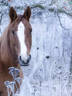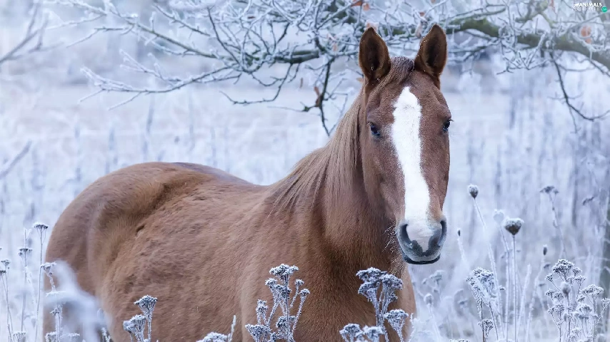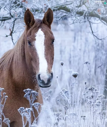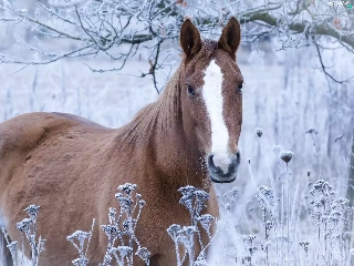 Horse, grass, branch pics, frosted