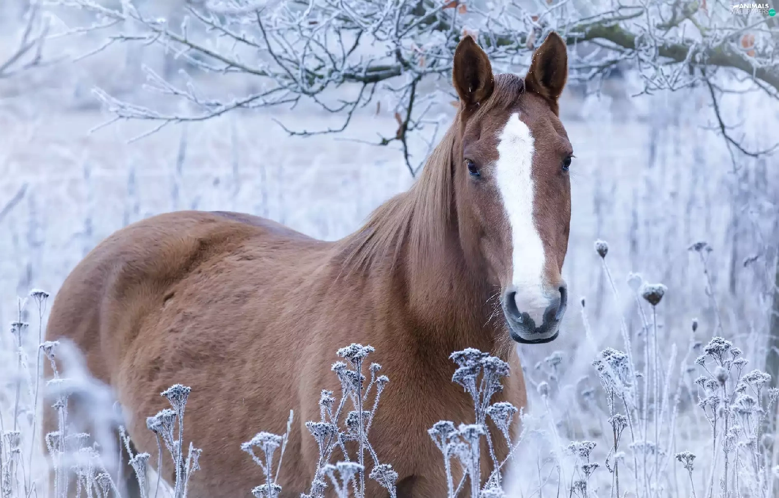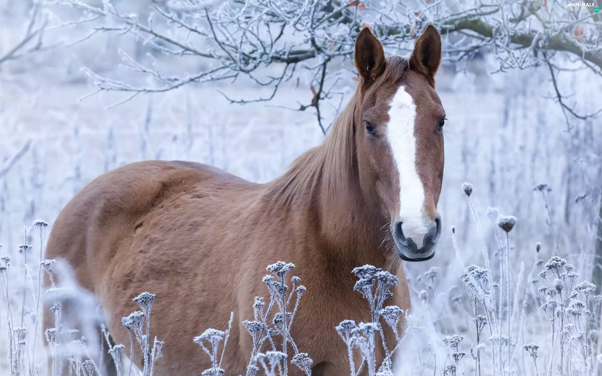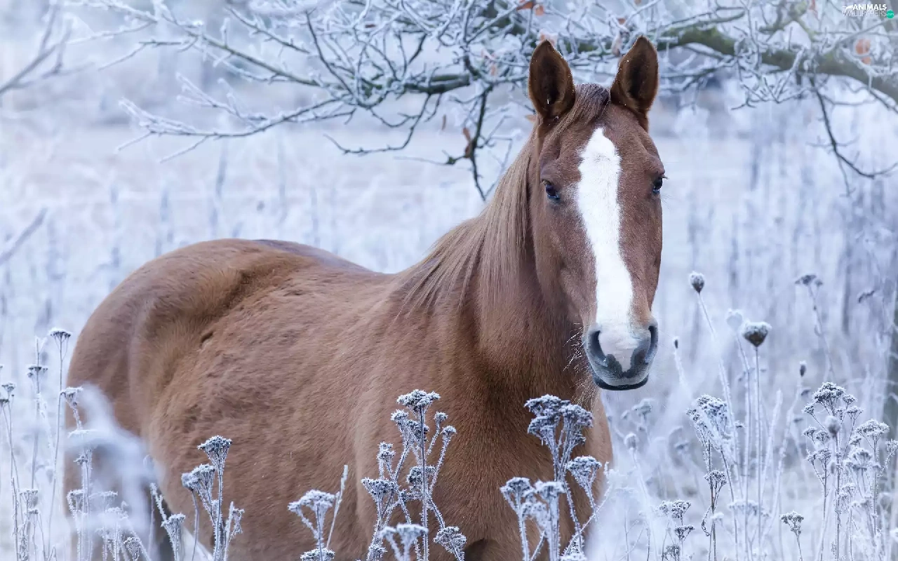 Horse, grass, branch pics, frosted