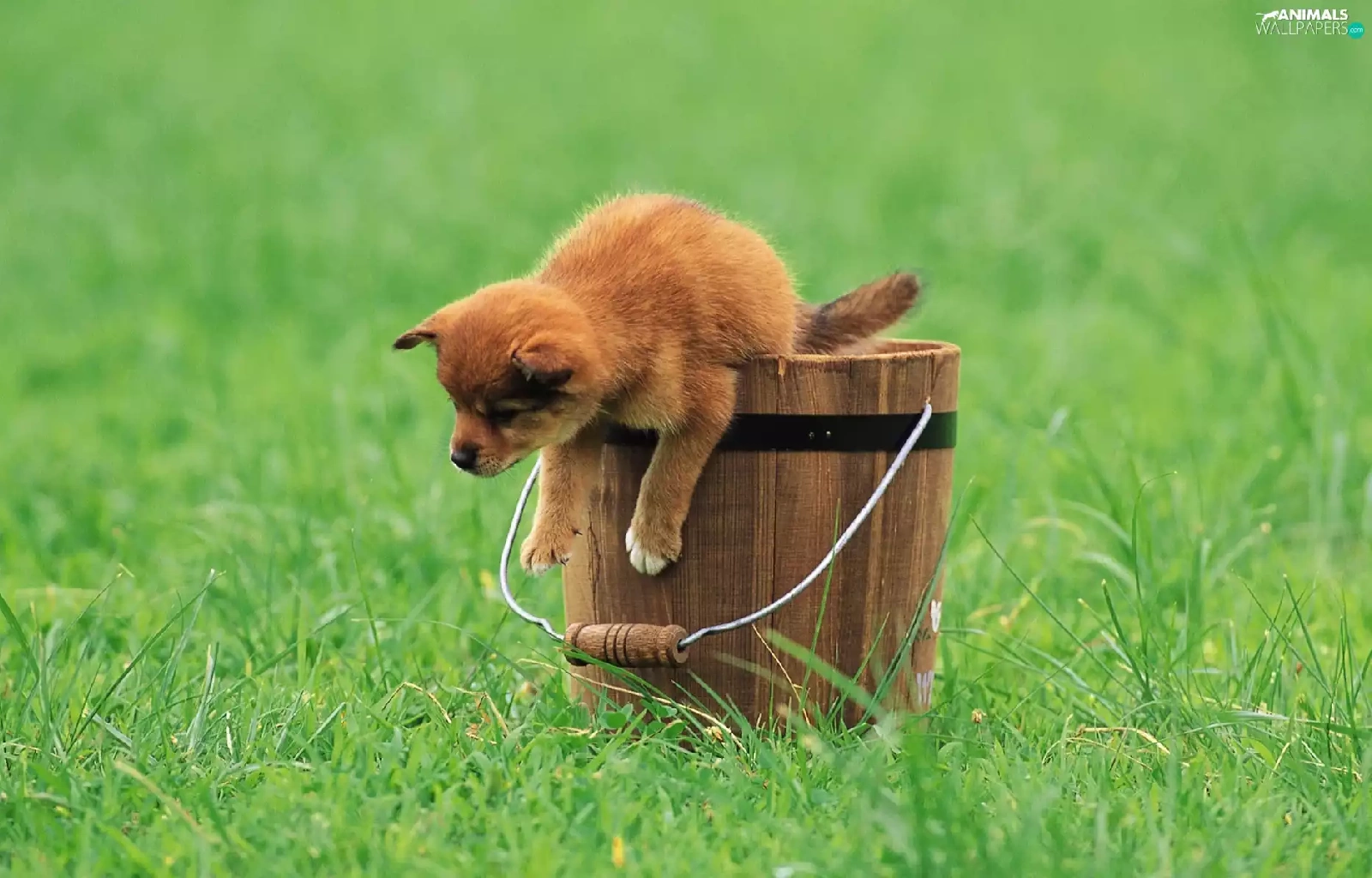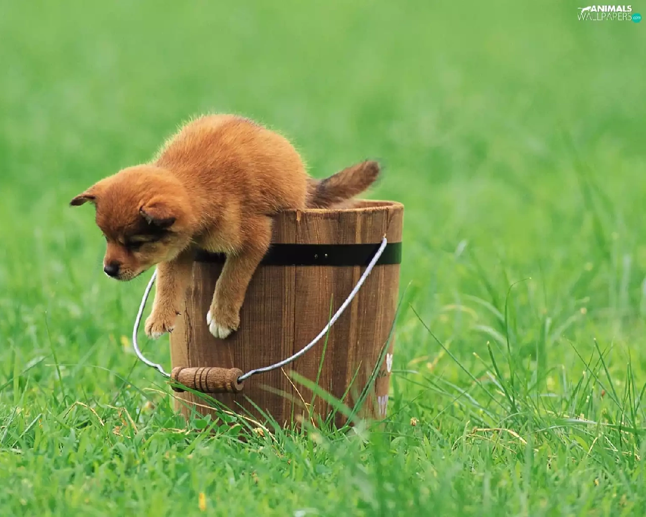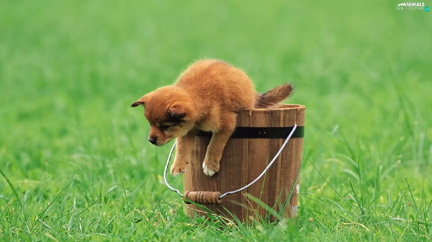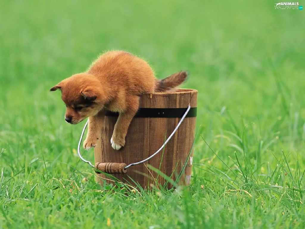 grass, Puppy, Bucket