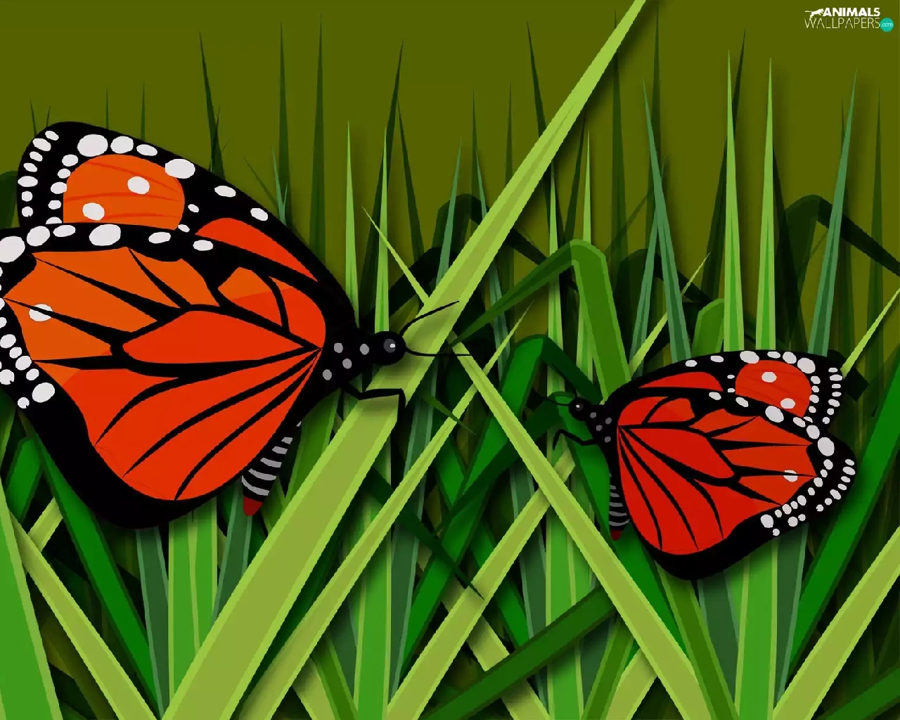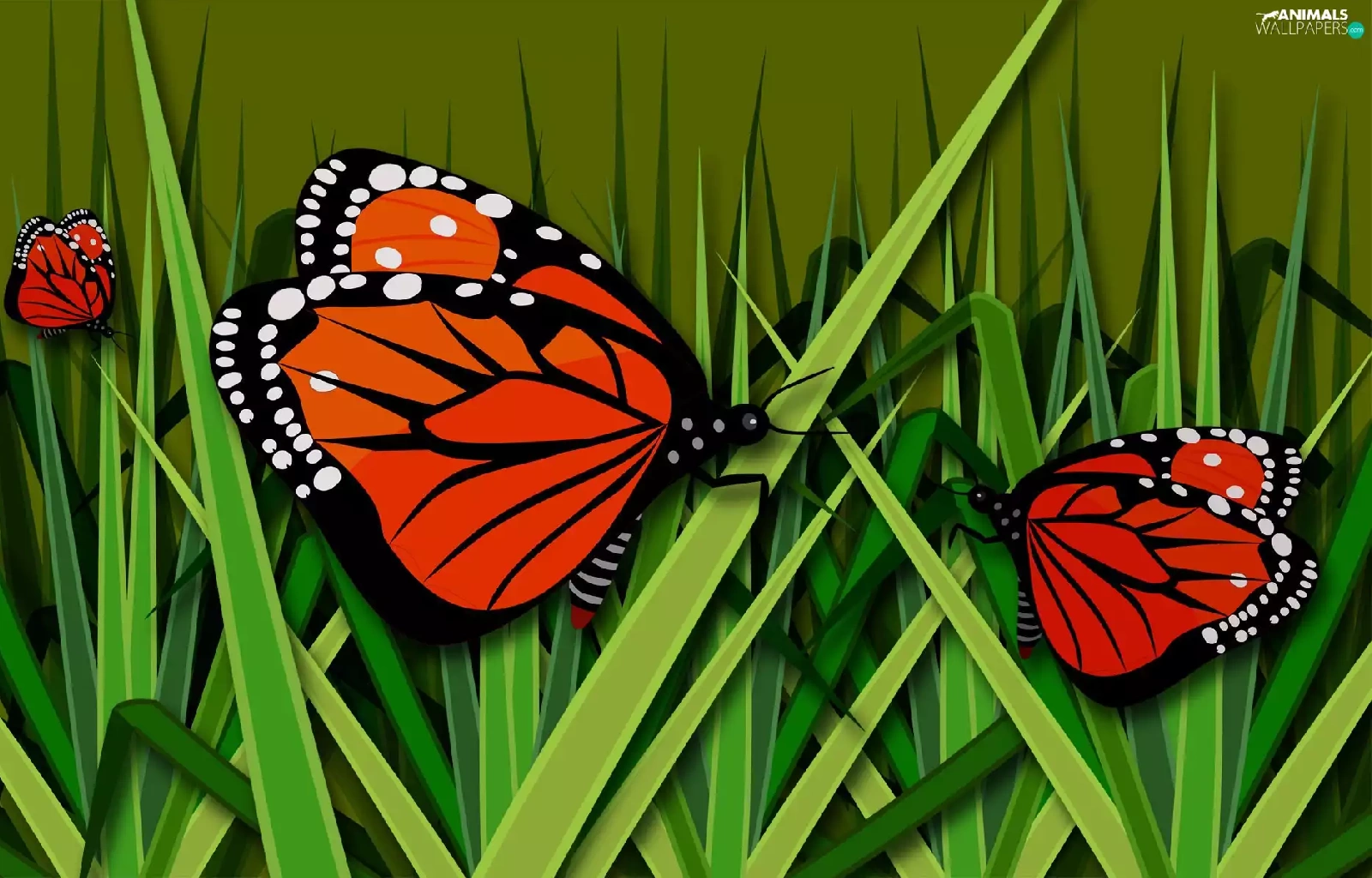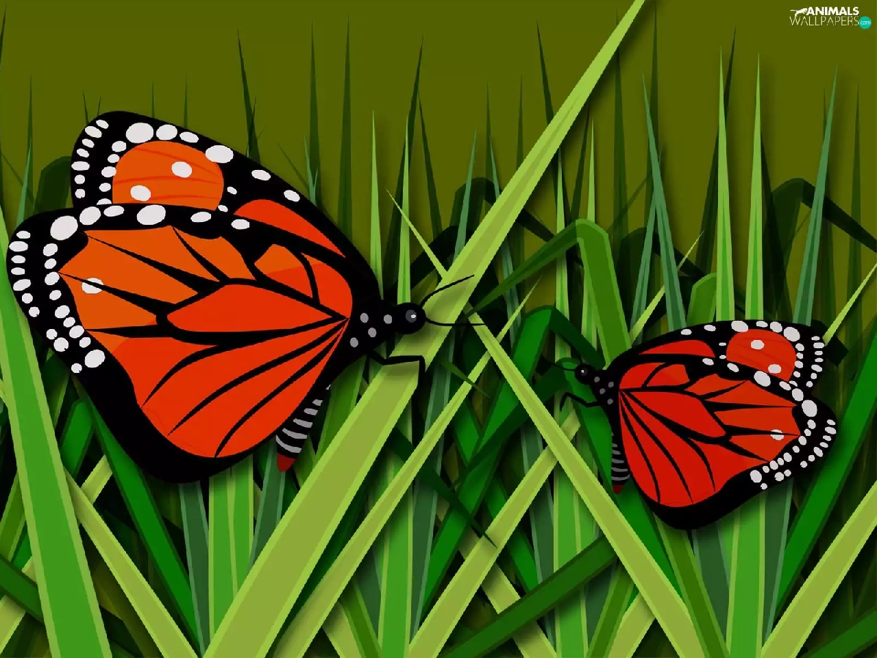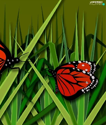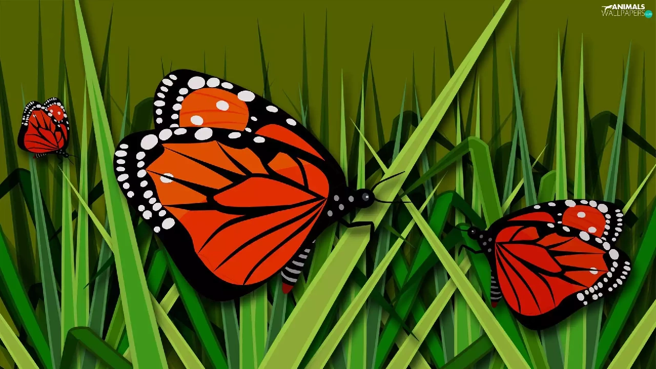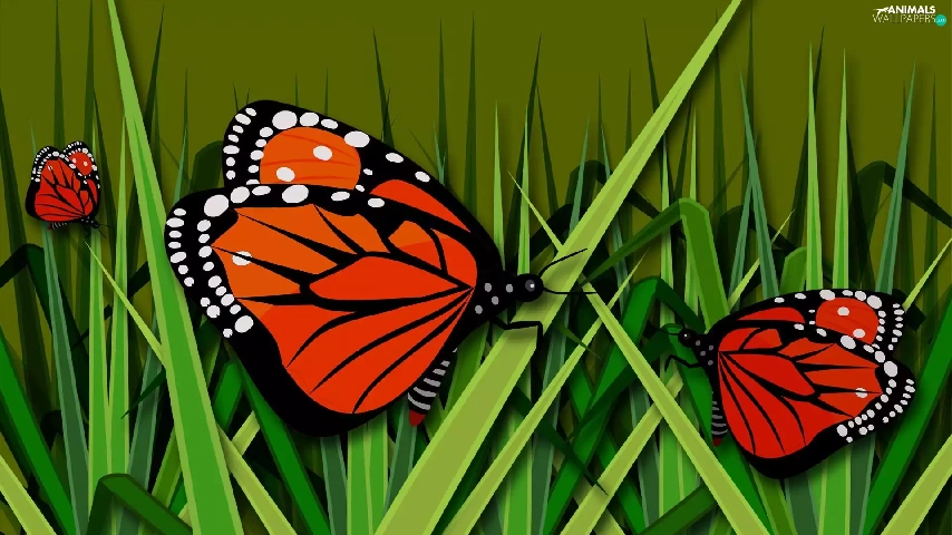 grass, graphics, butterflies