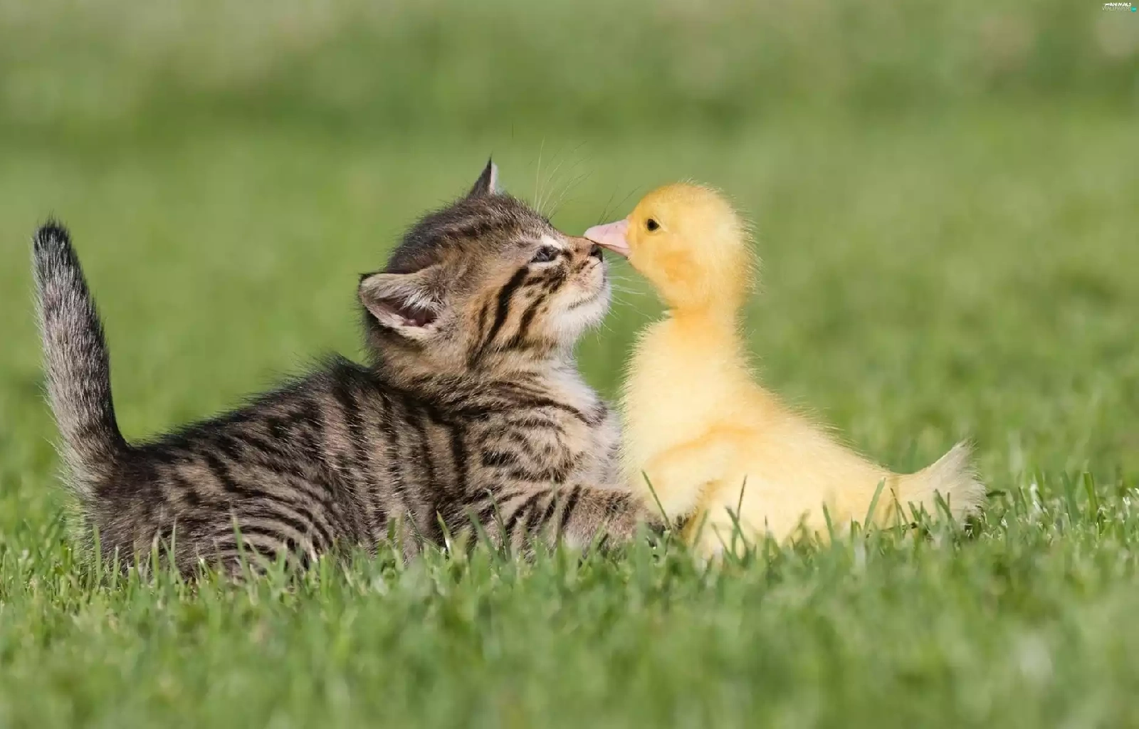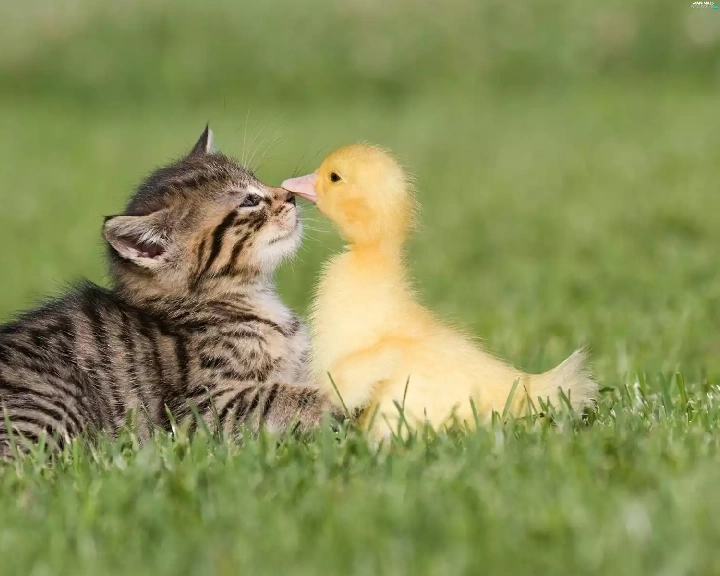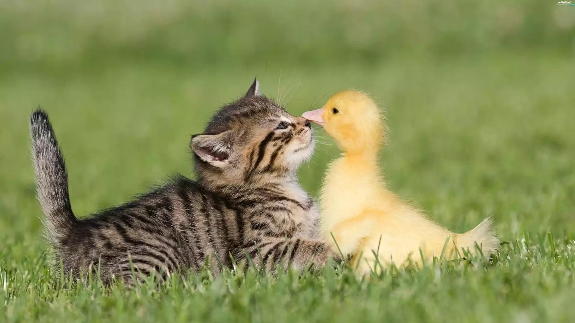 grass, duck, cat