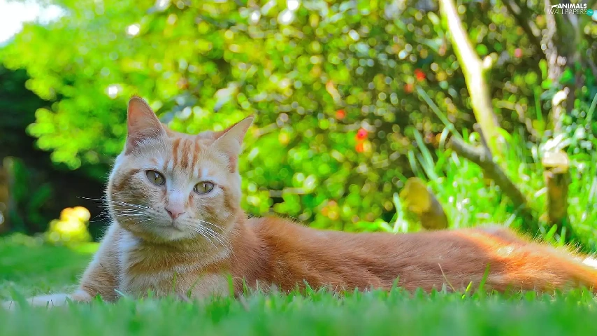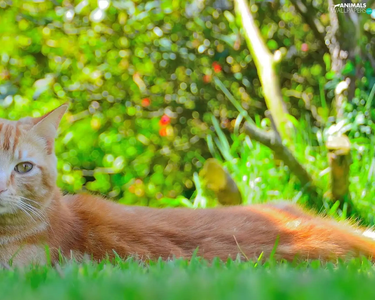 grass, ginger, cat