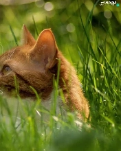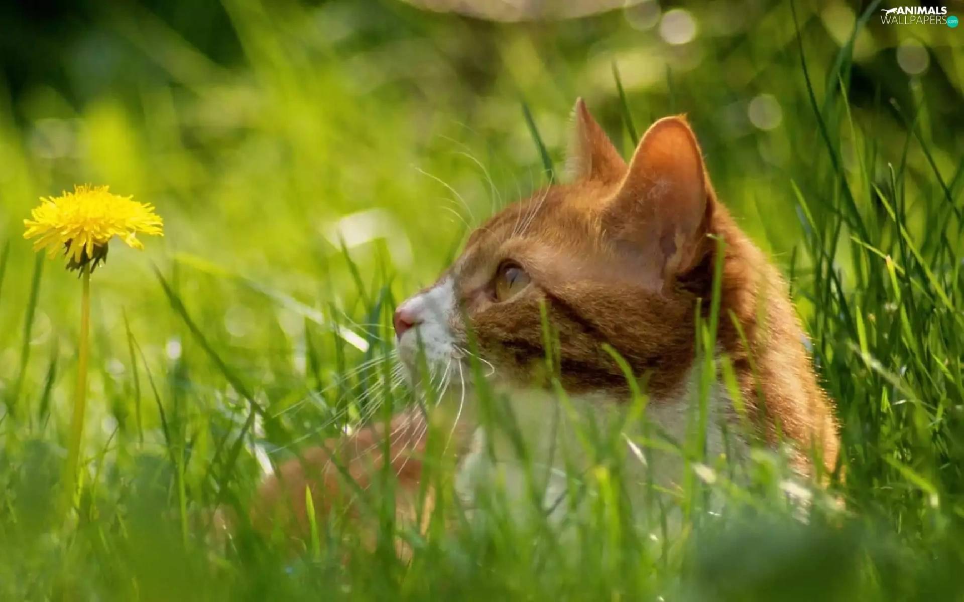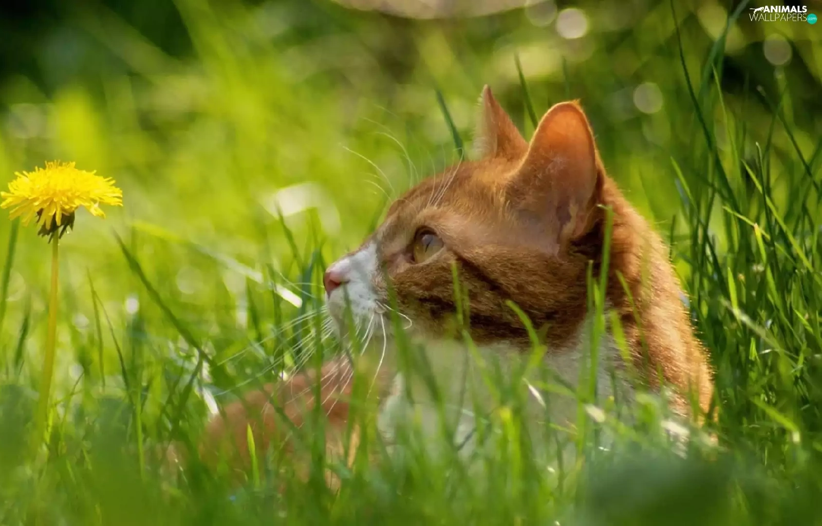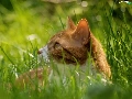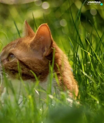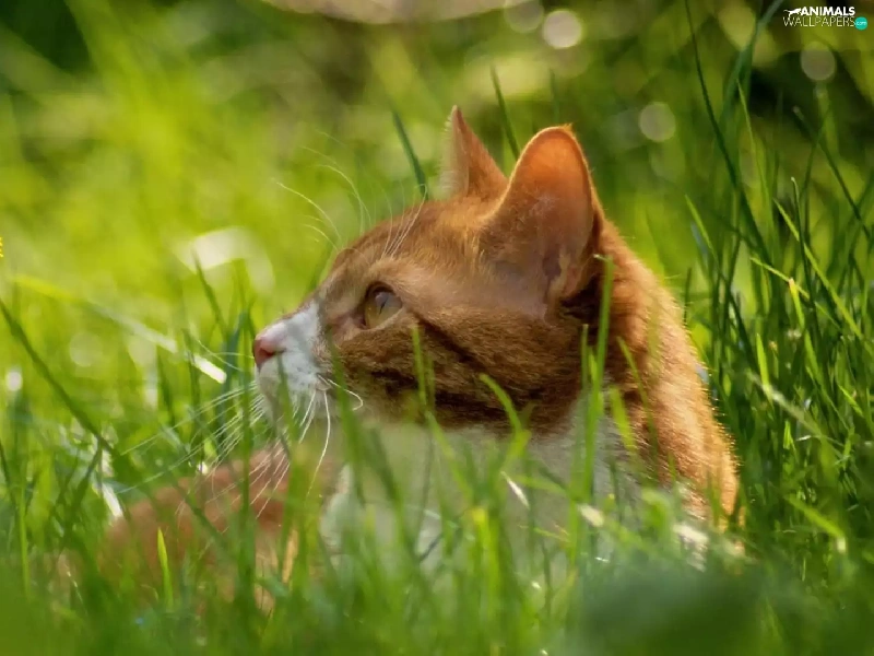 puffball, grass, cat, Meadow, ginger