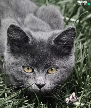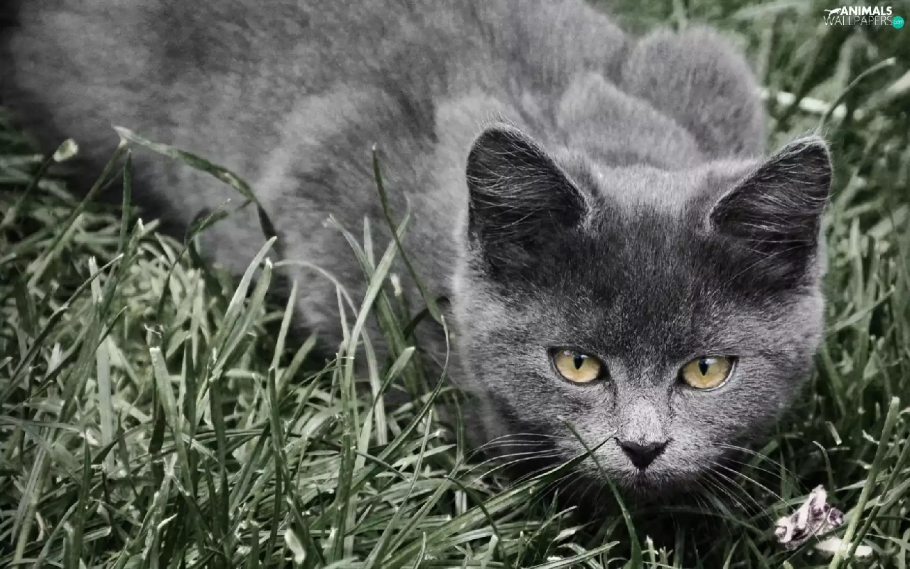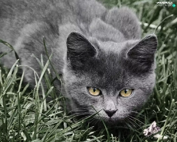 grass, Gray, cat