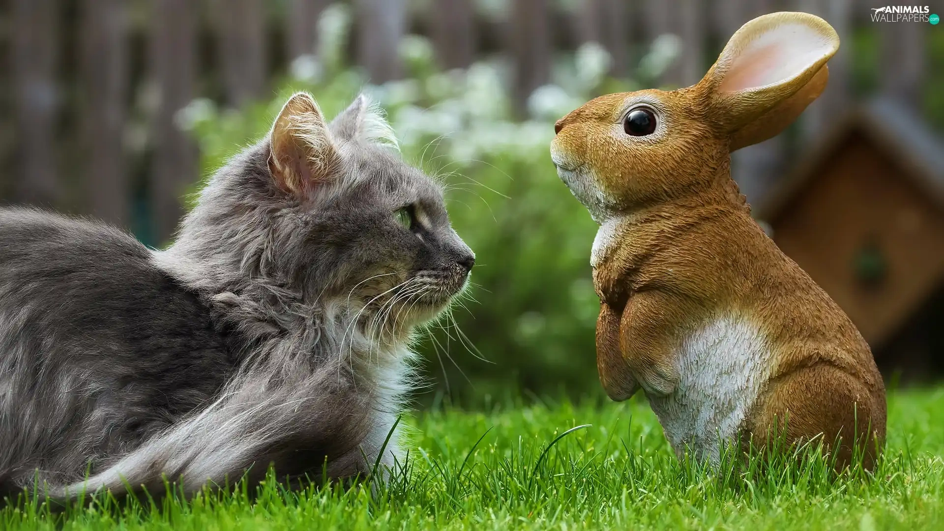 rabbit, grass, cat, figure, Gray