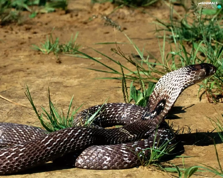 grass, Snake, cobra