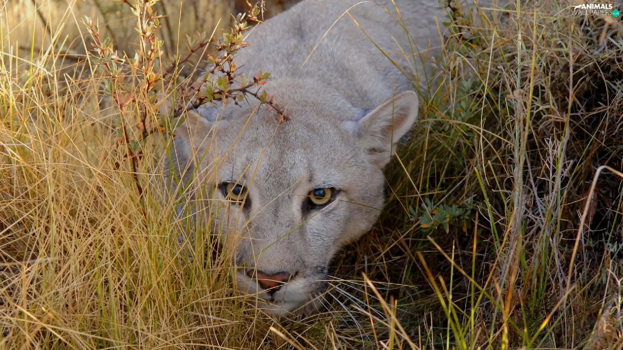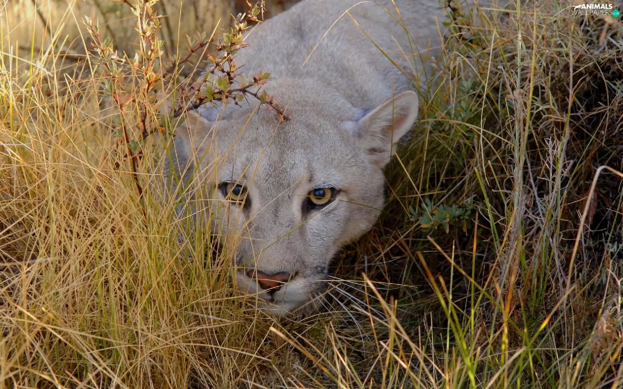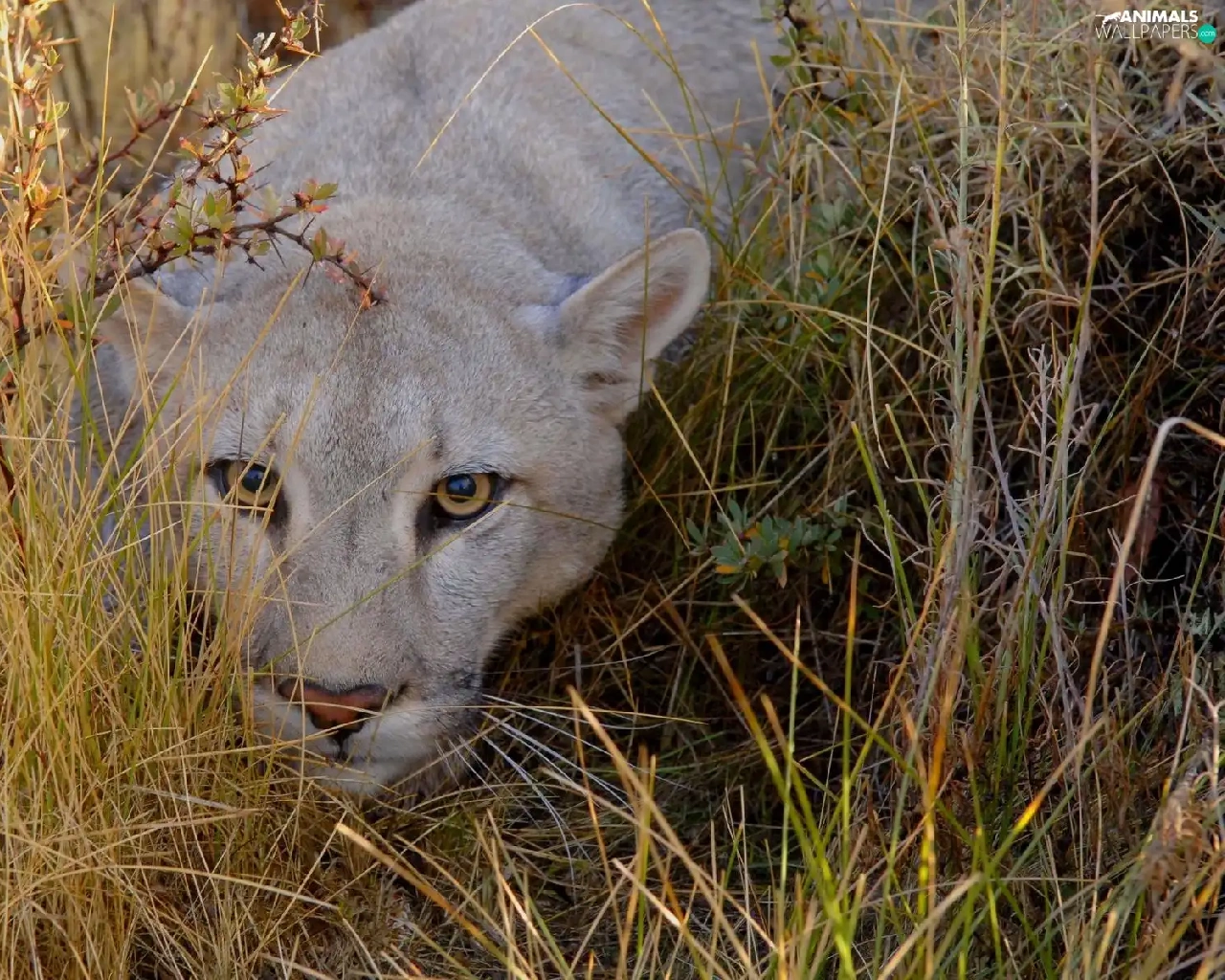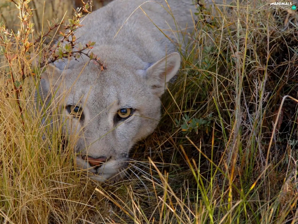 grass, lurking, cougar