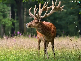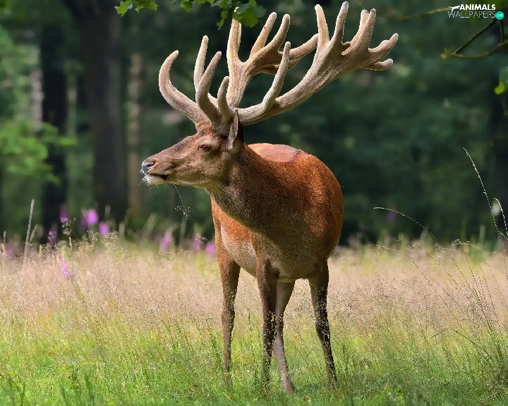 grass, standing, deer