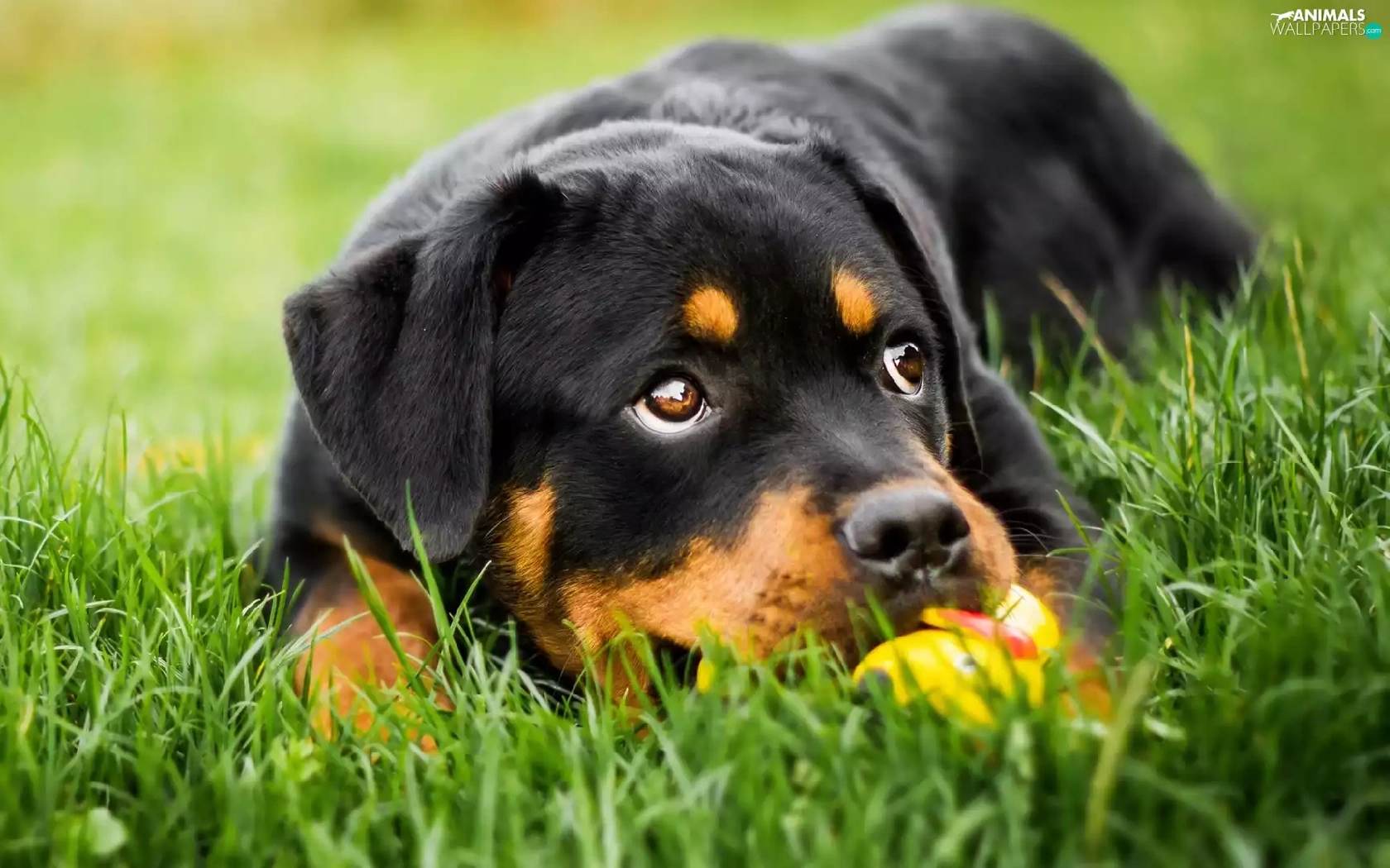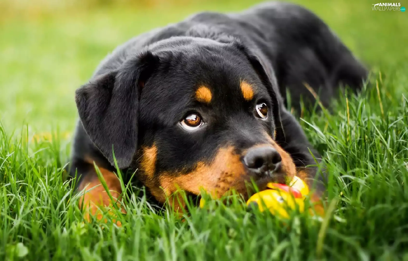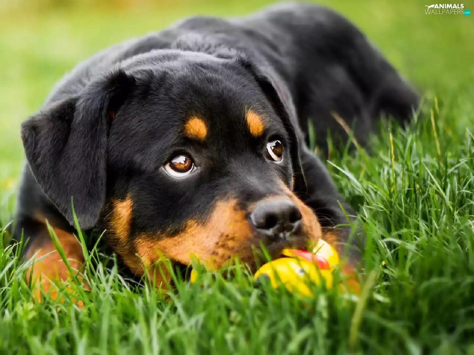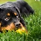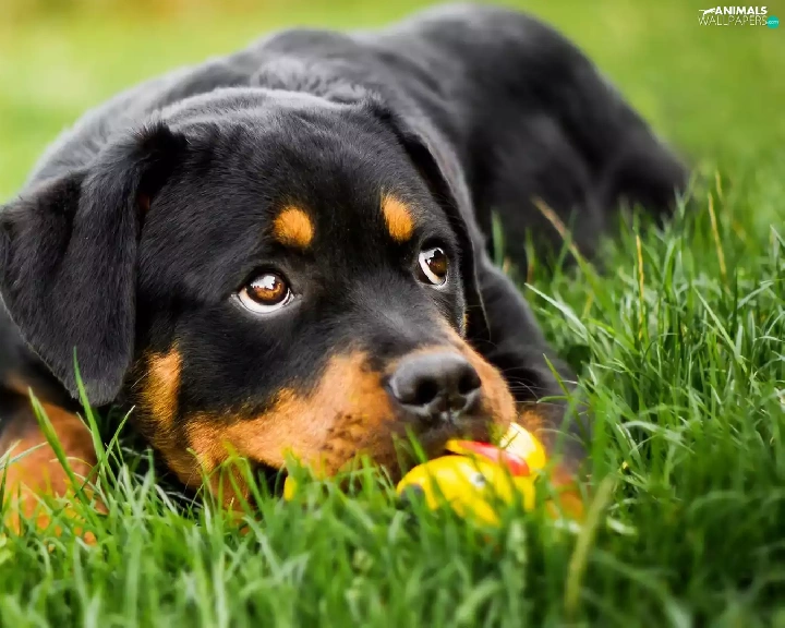 Rottweiler, grass, dog, Puppy, lying