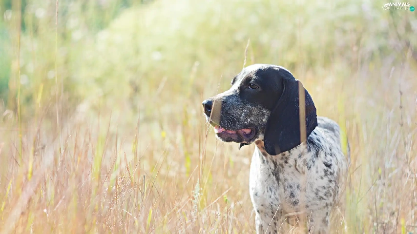 ears, grass, dog, Longs, spotted