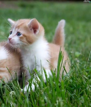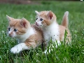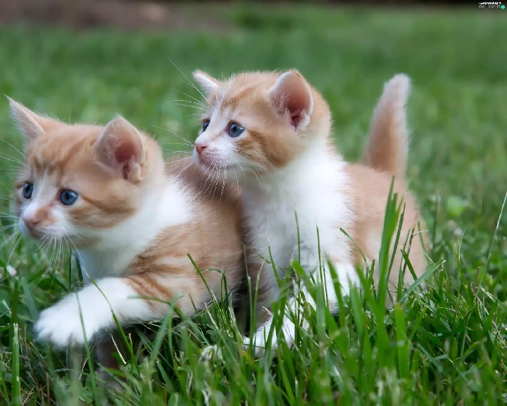 Two cars, puss, grass, little doggies
