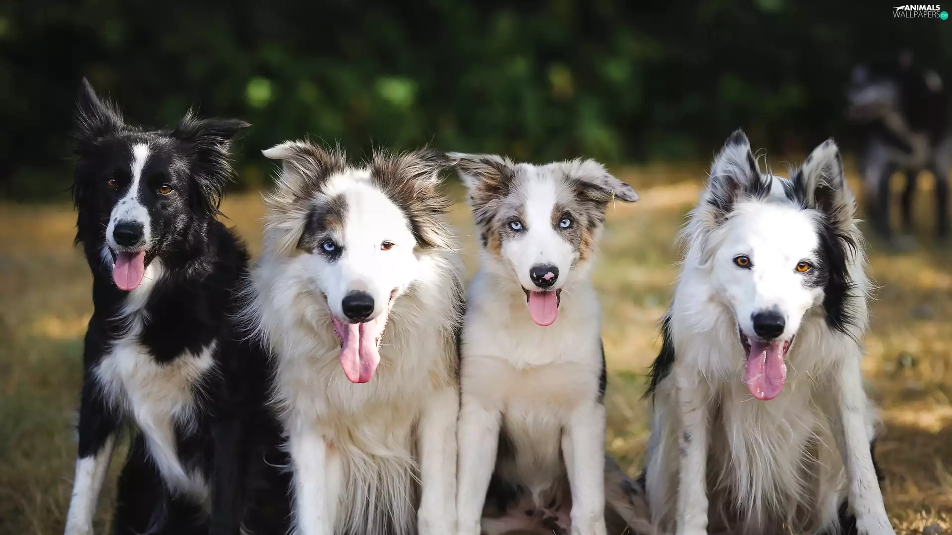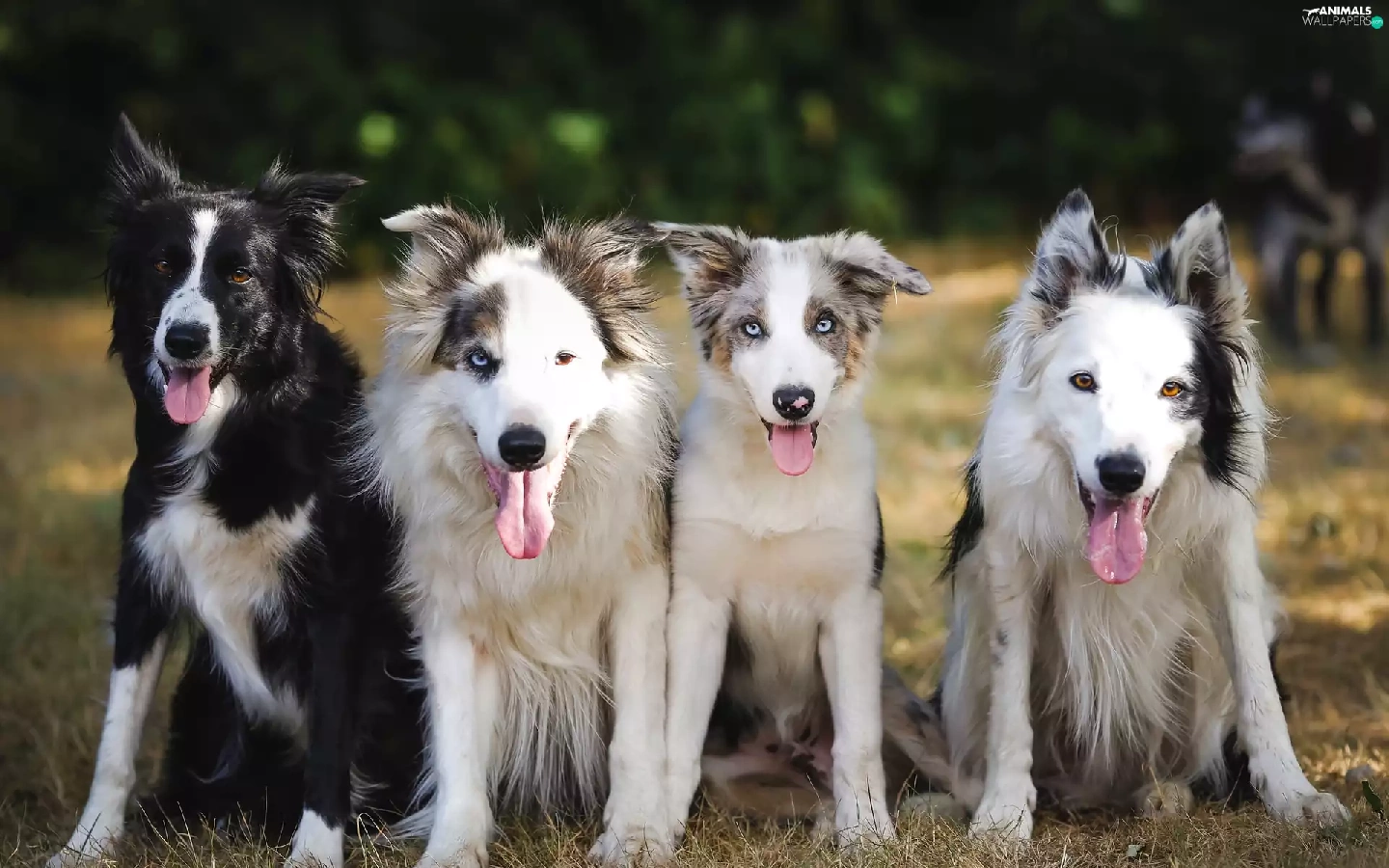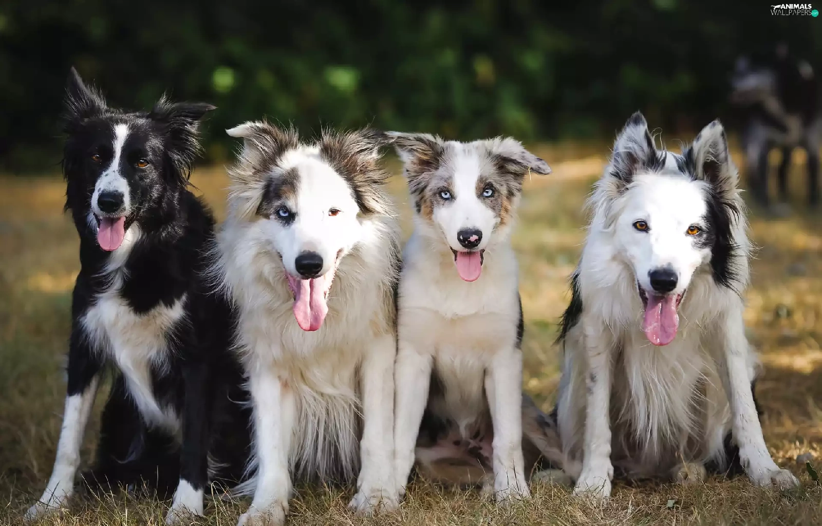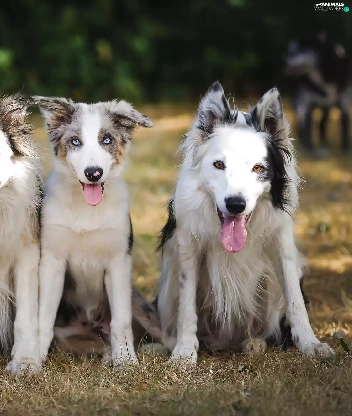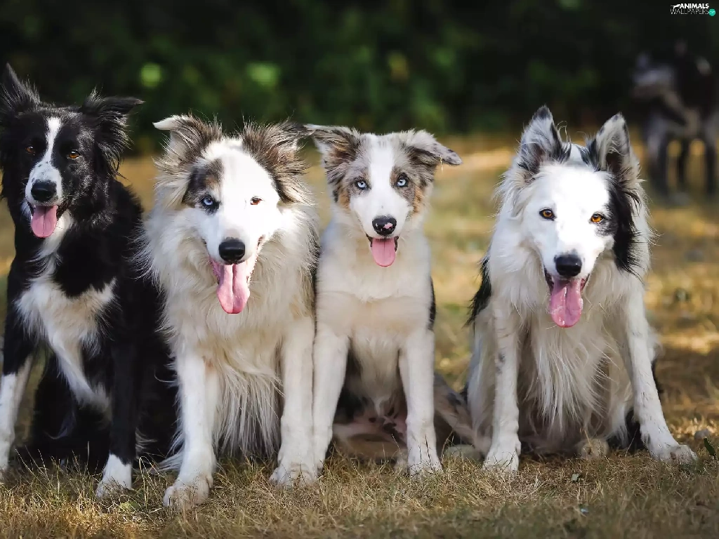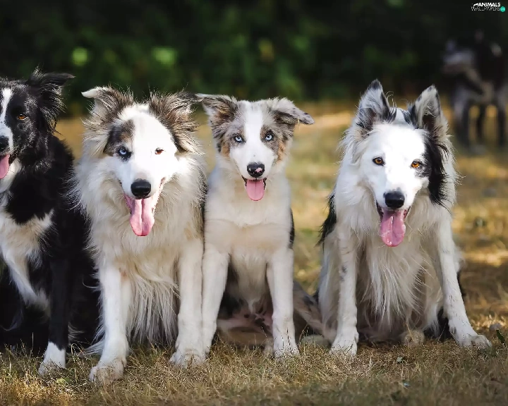 grass, four, Dogs