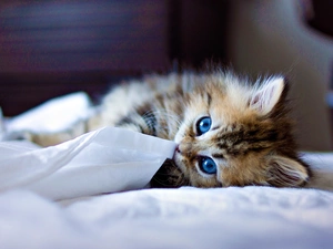 kitten, grass, fawn, White, small