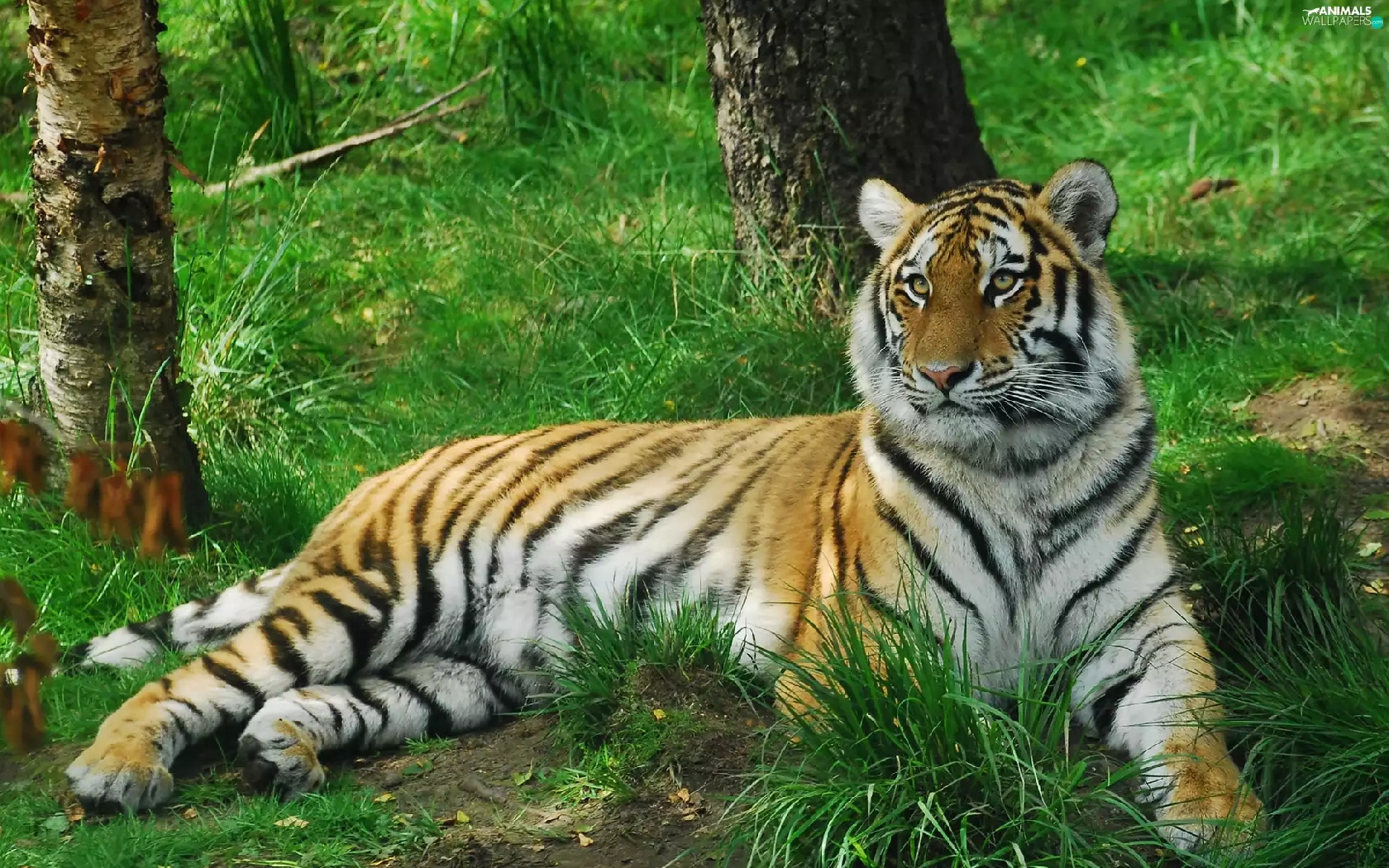 grass, tiger, forest