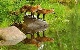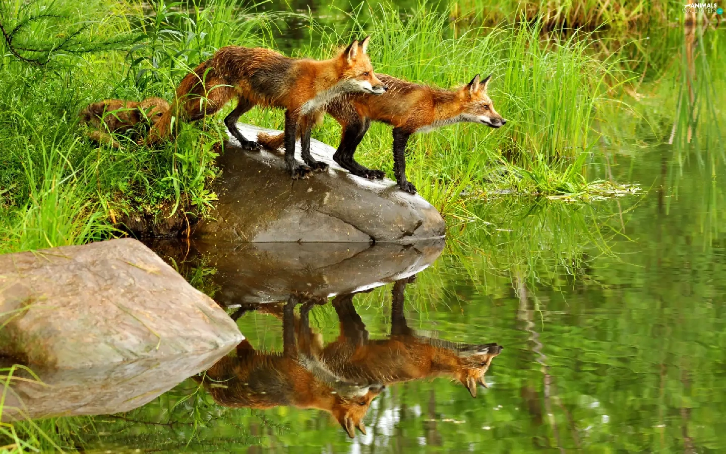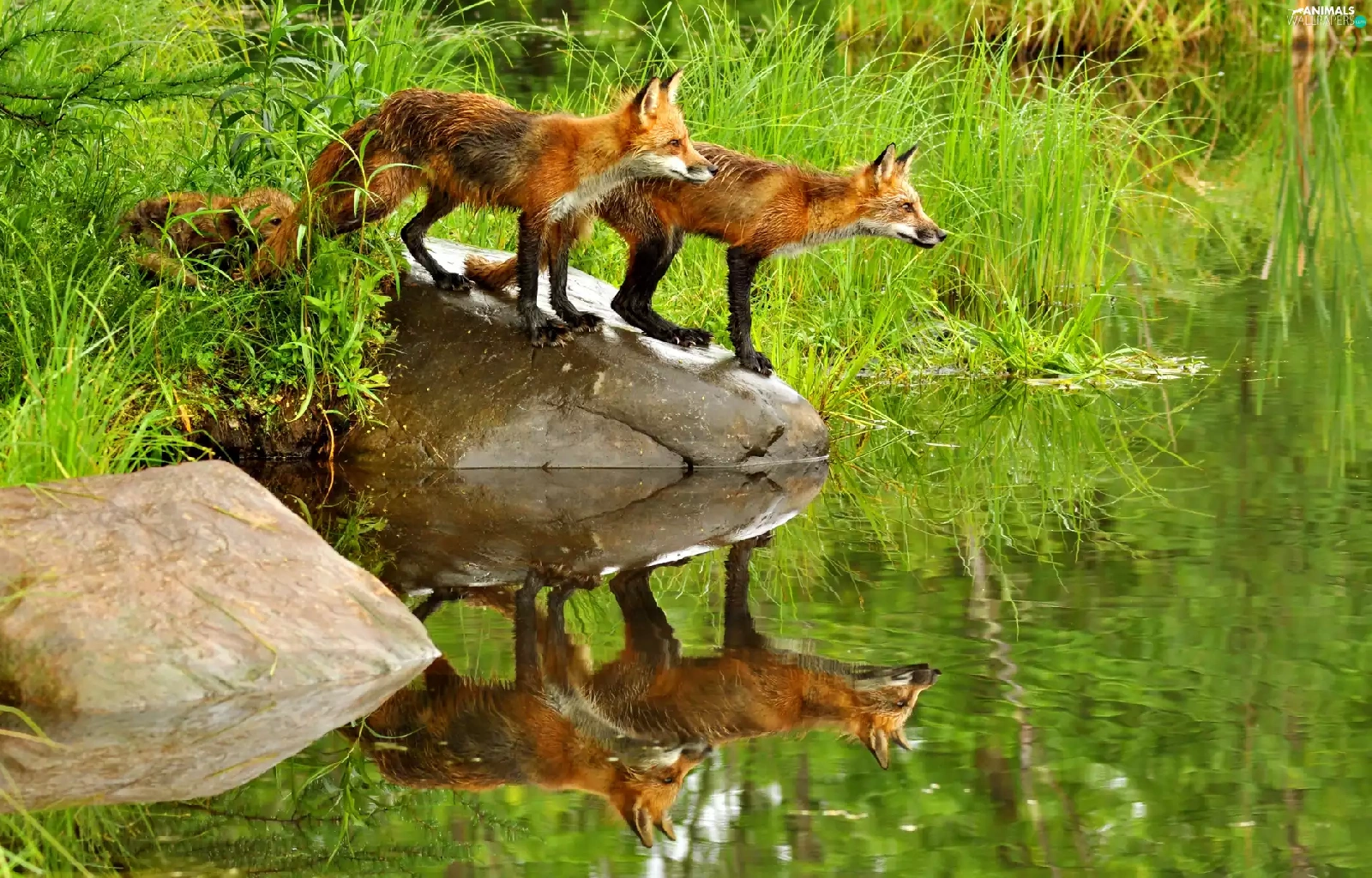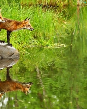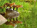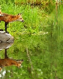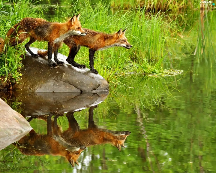 Pond - car, fox, grass, Stones, water, lake