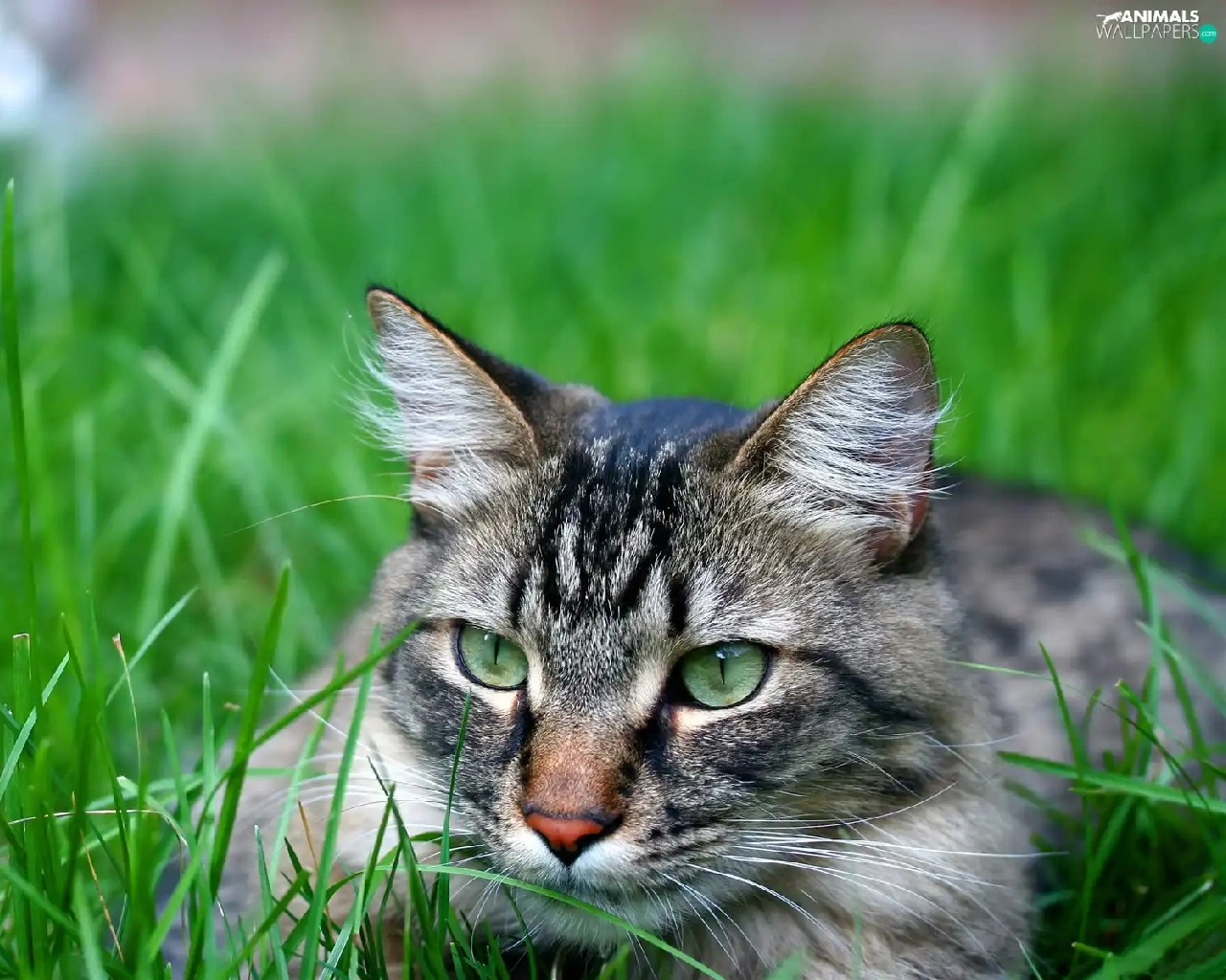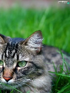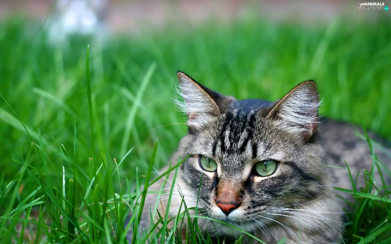 Gray, ##, grass, cat