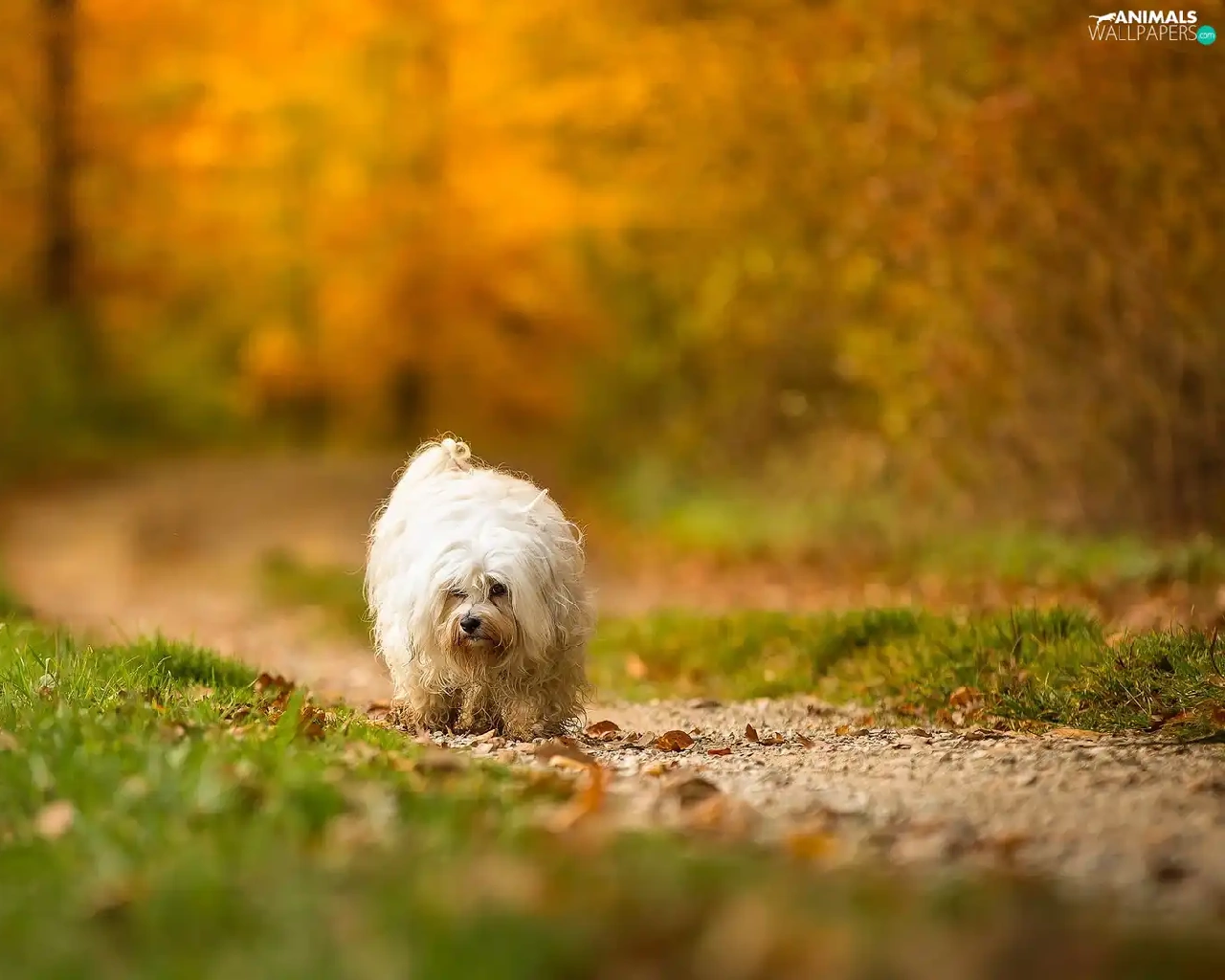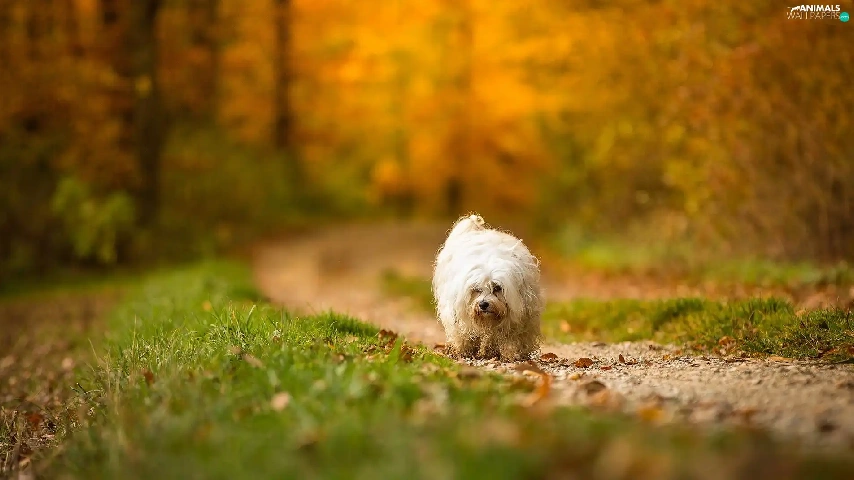 Havanese, Path, grass, forest