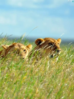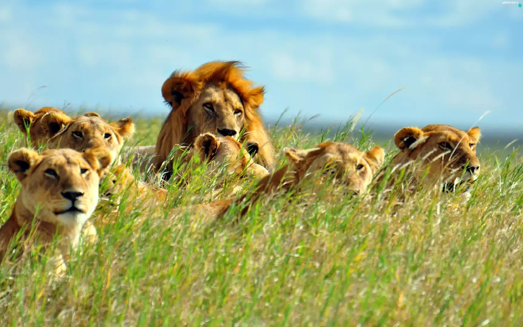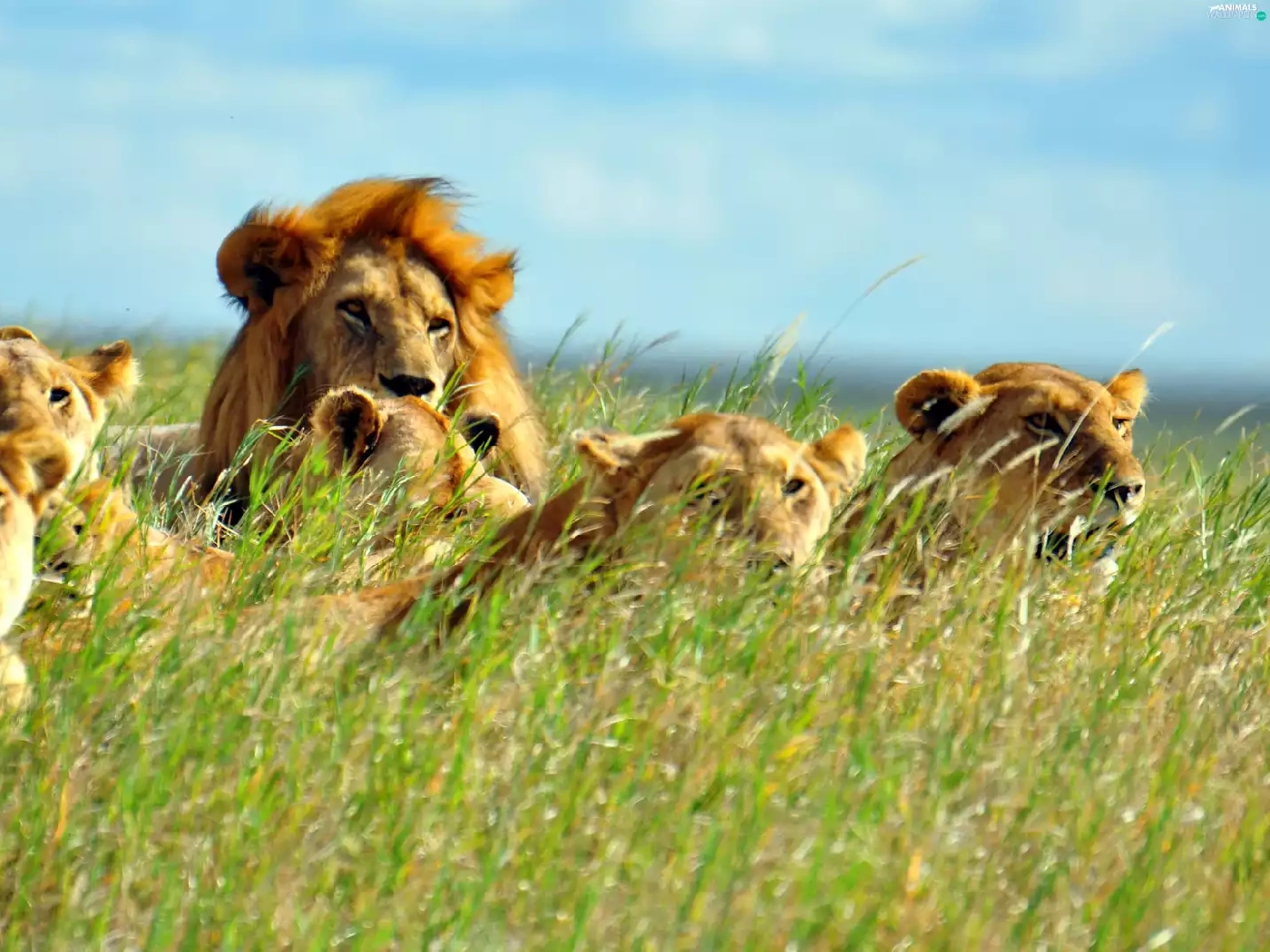 grass, lions, head