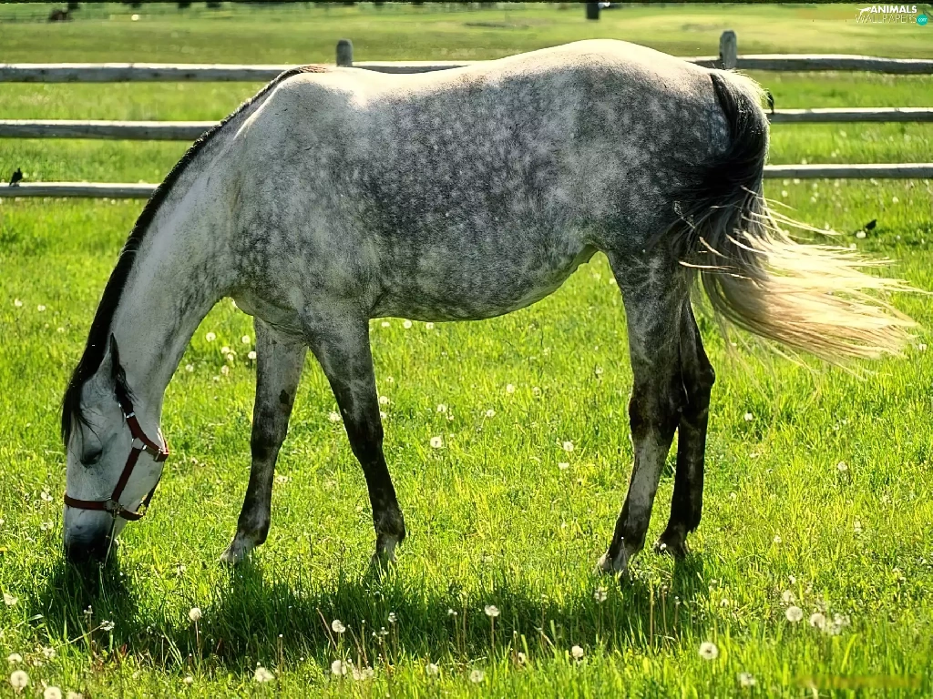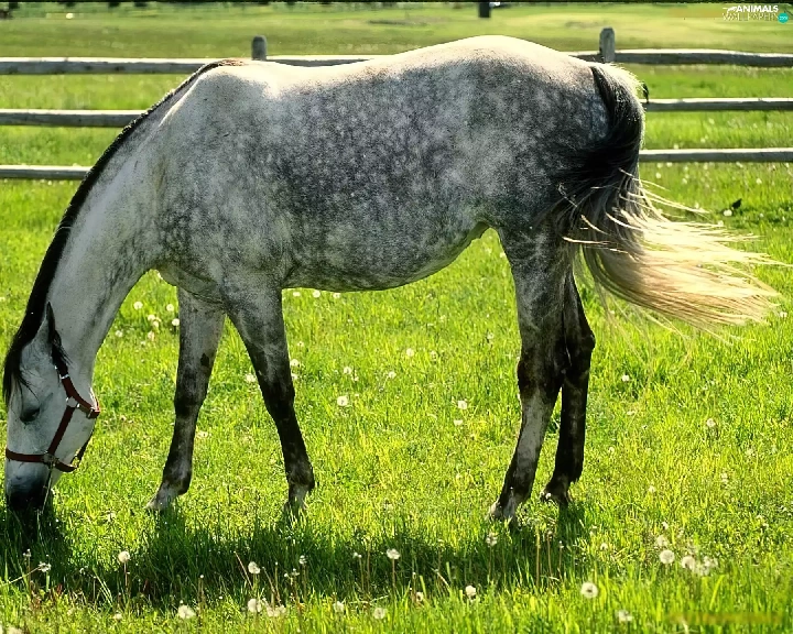 Horse, bridle, Meadow, grass