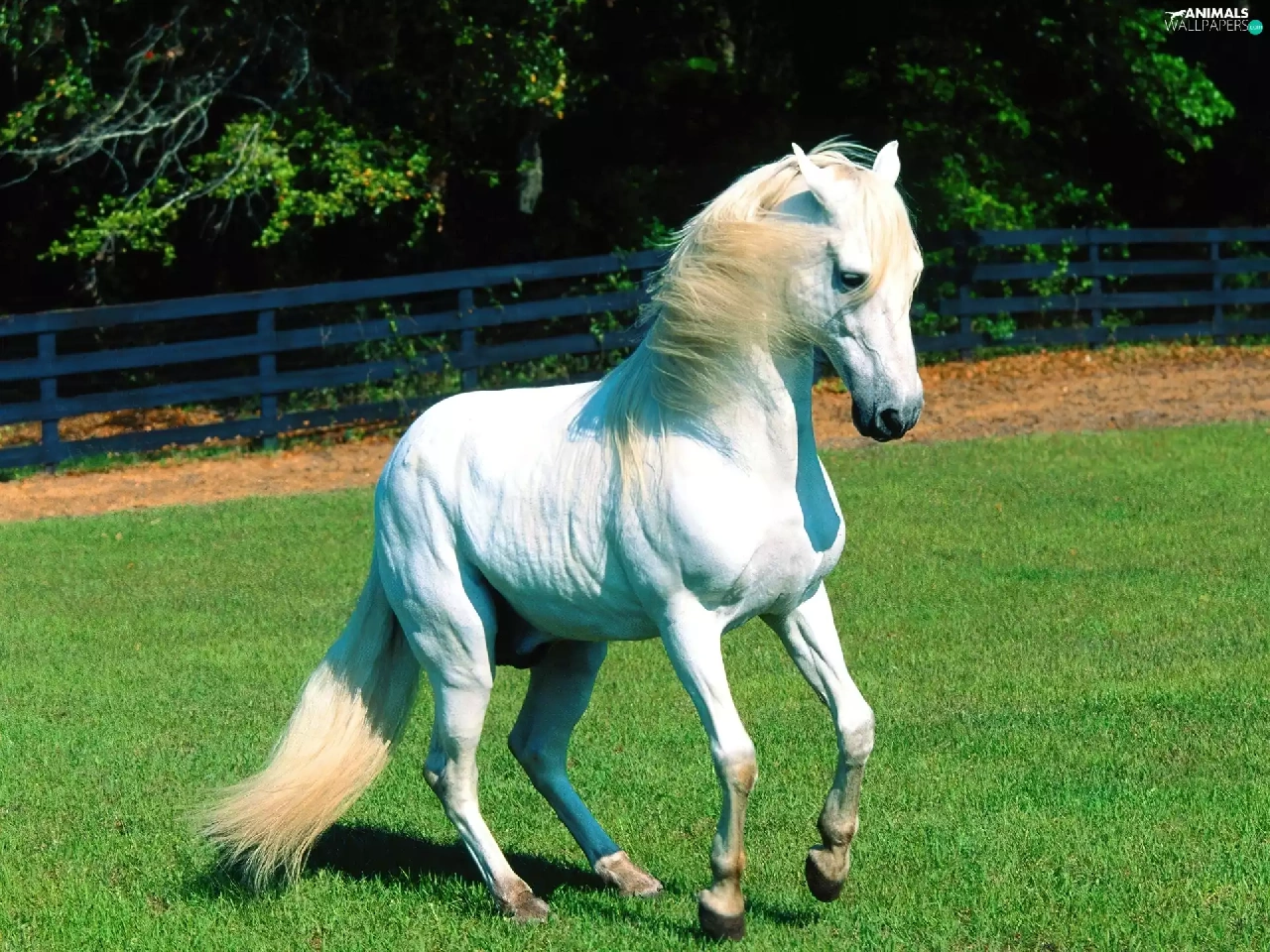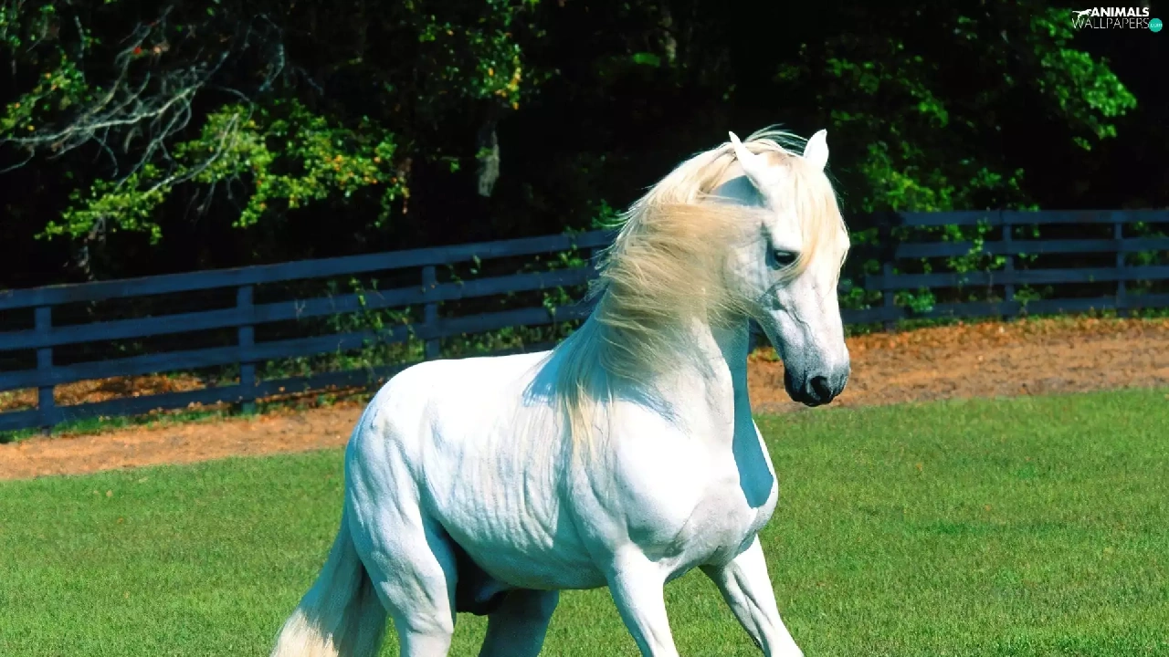 grass, White, Horse