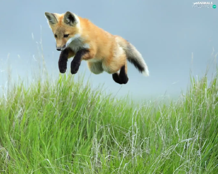 grass, Fox, jump