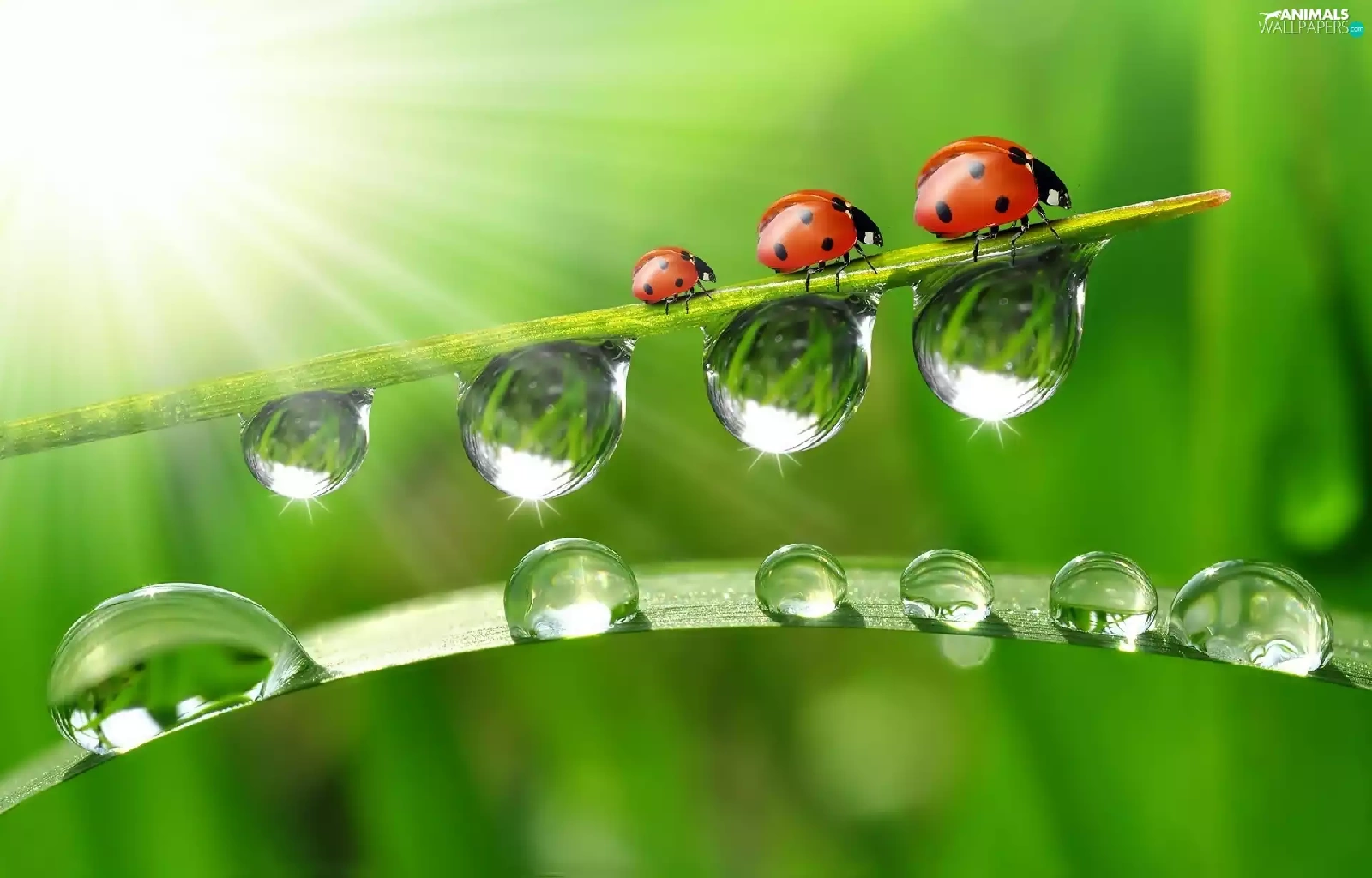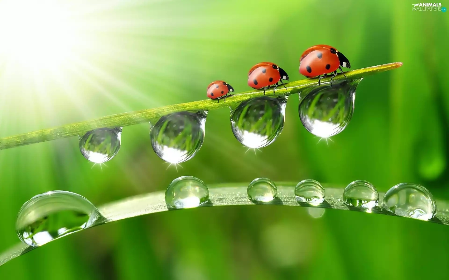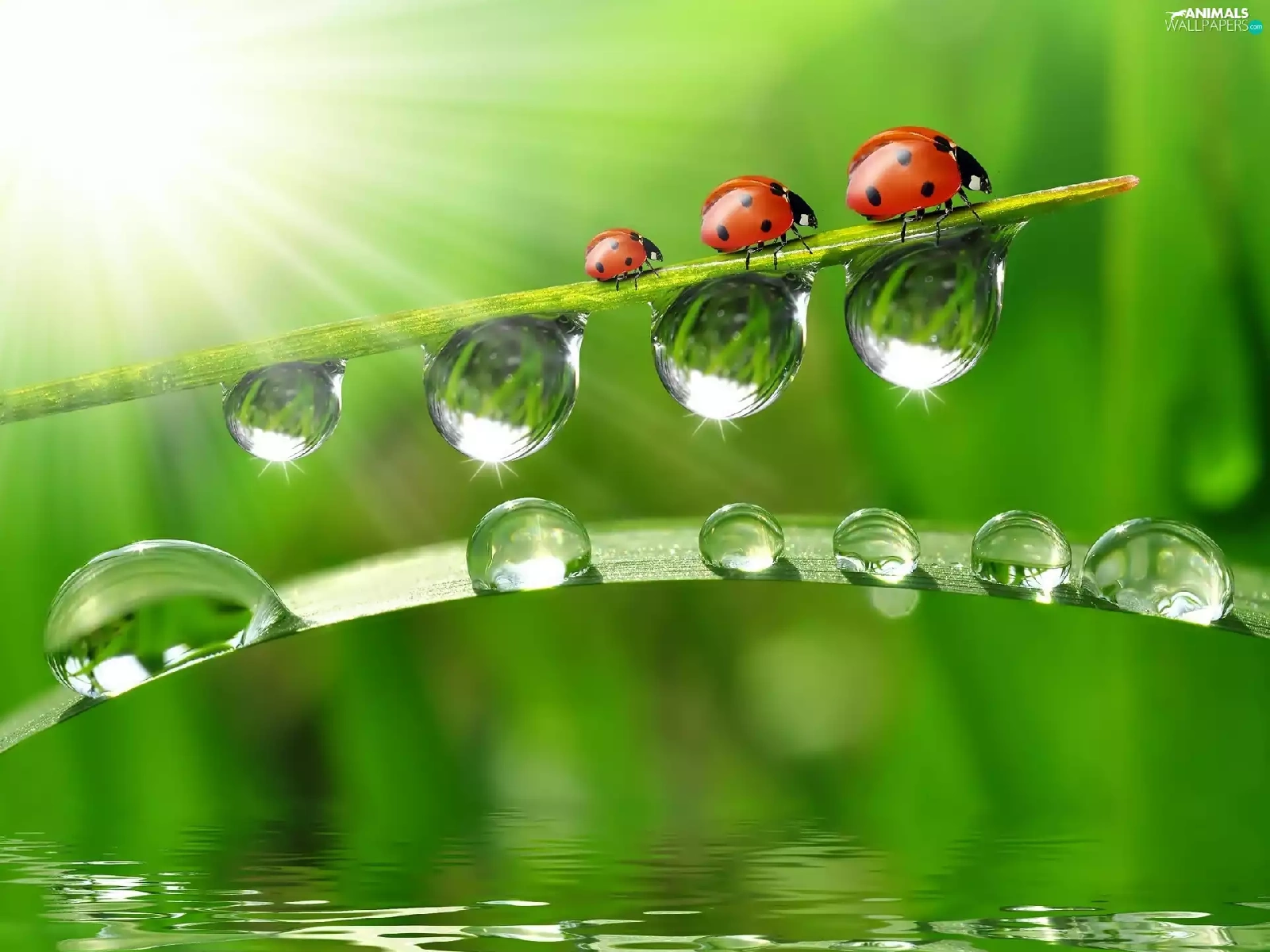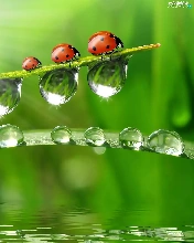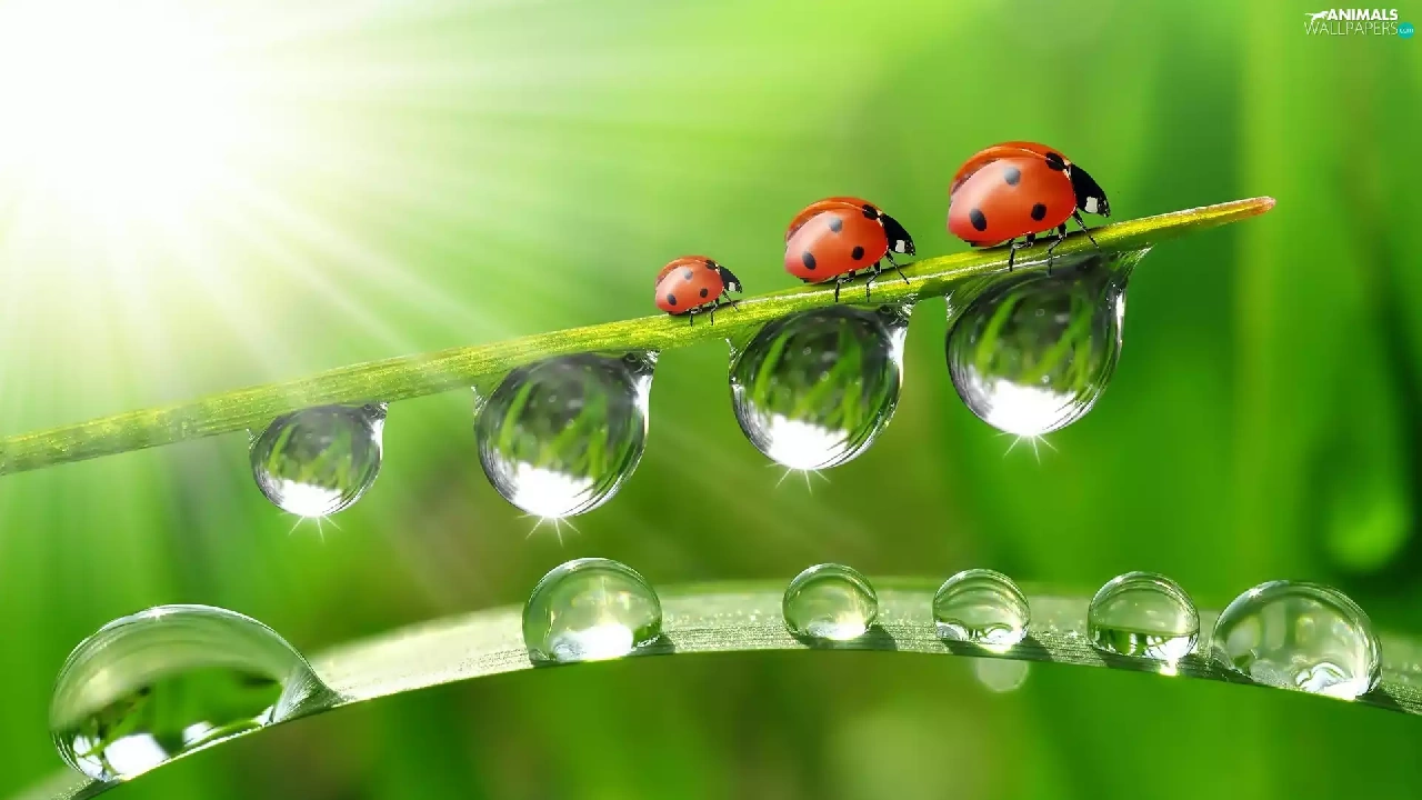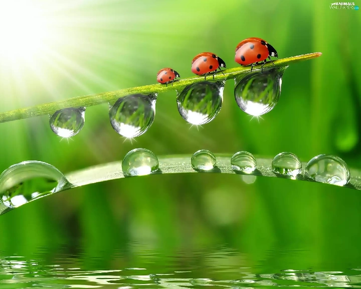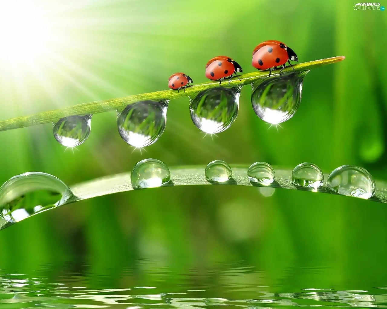 ladybugs, drops, water, grass
