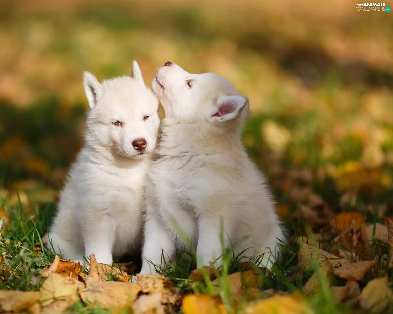 grass, puppies, Leaf