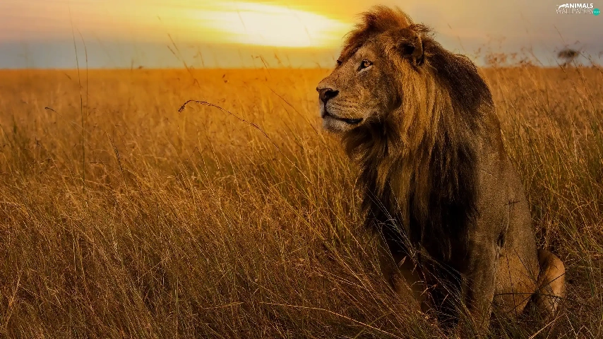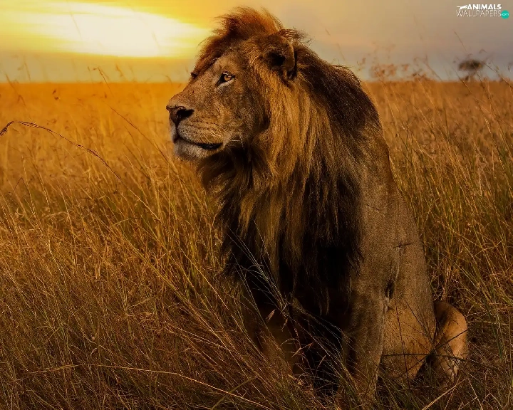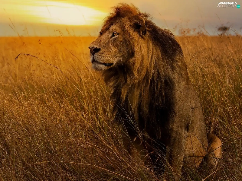 grass, sitter, Lion