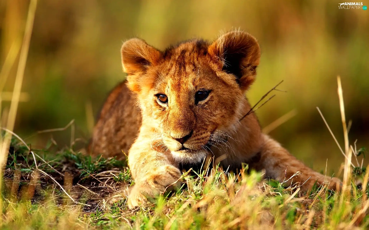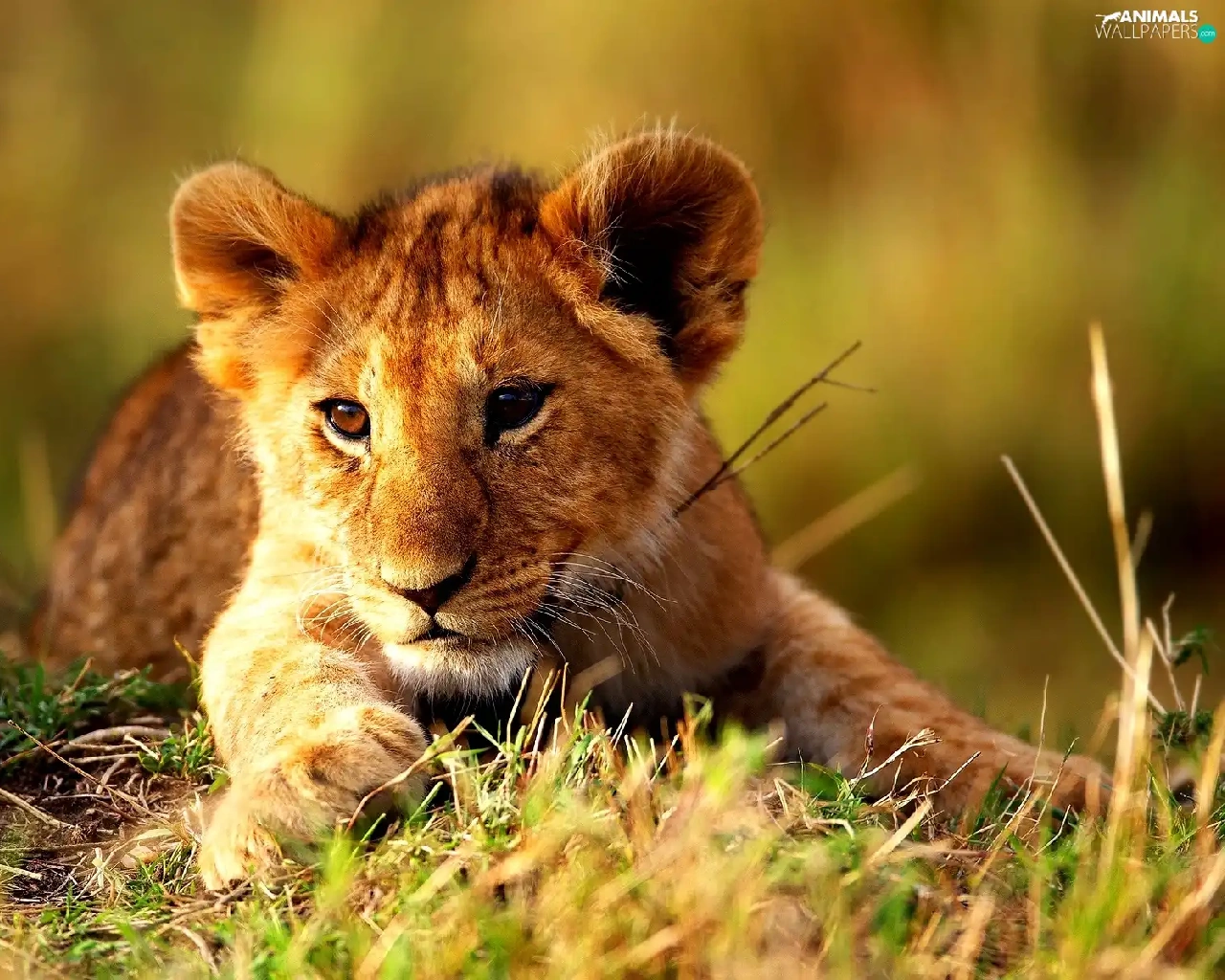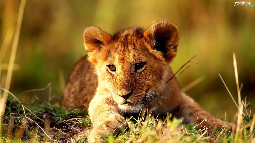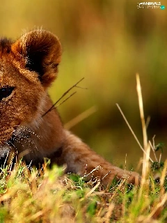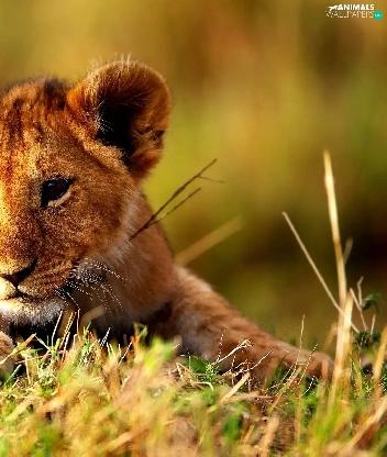grass, young, lion