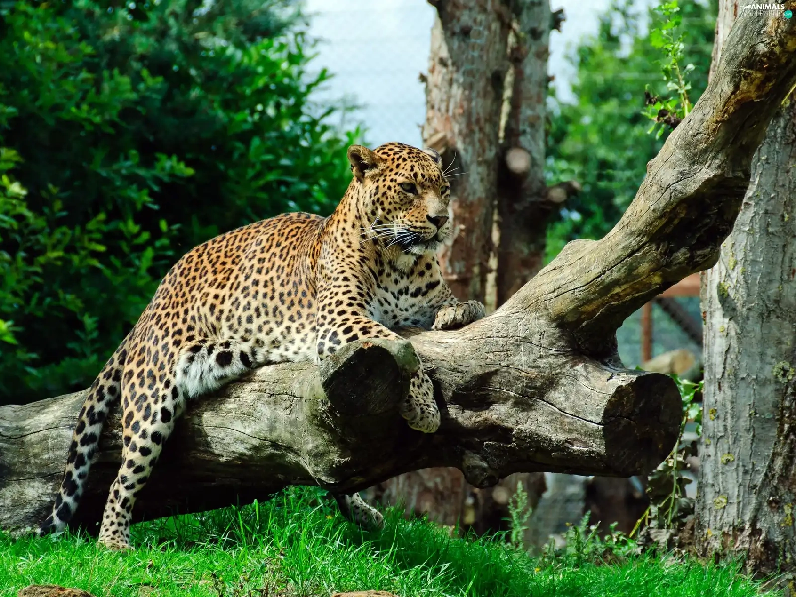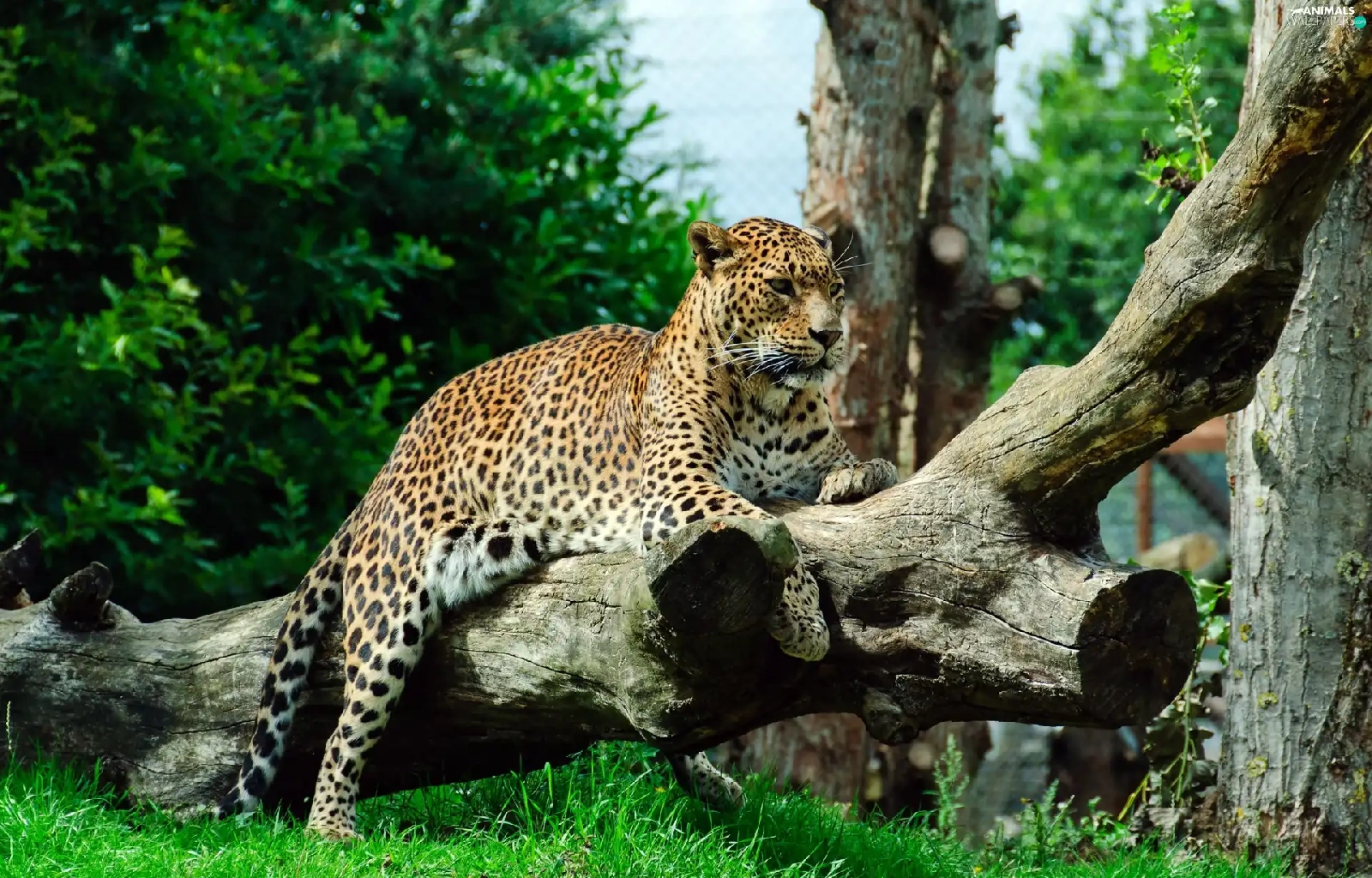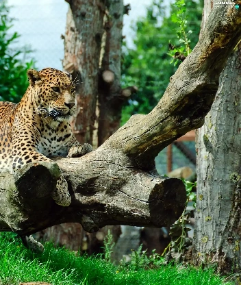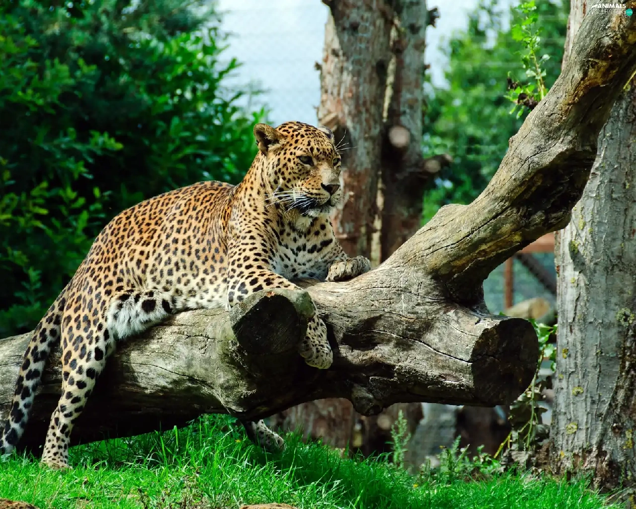 grass, Jaguar, Logs
