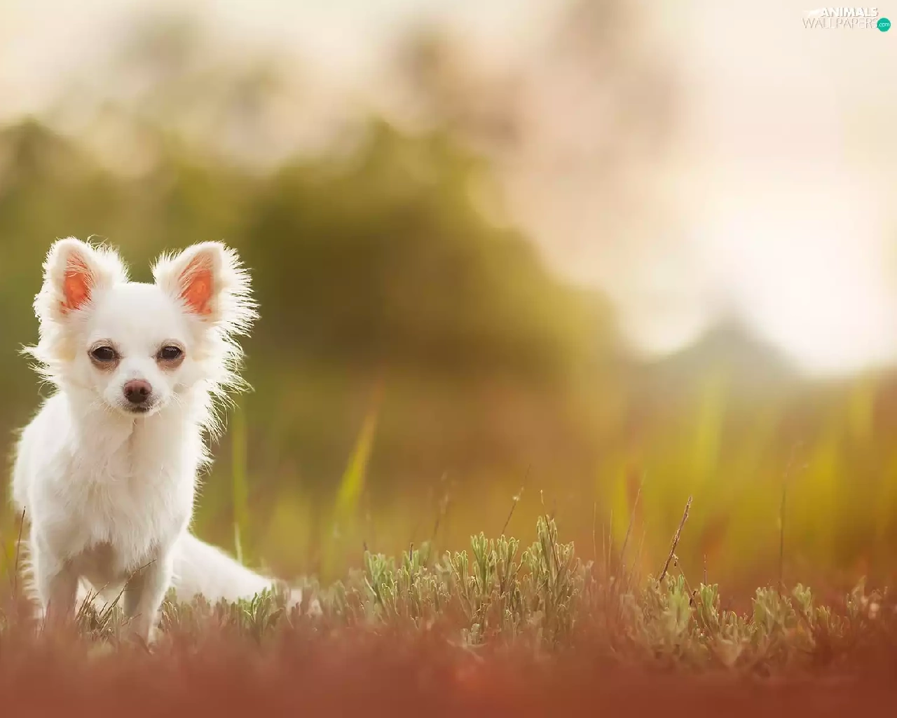 Long-haired Chihuahua, grass