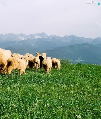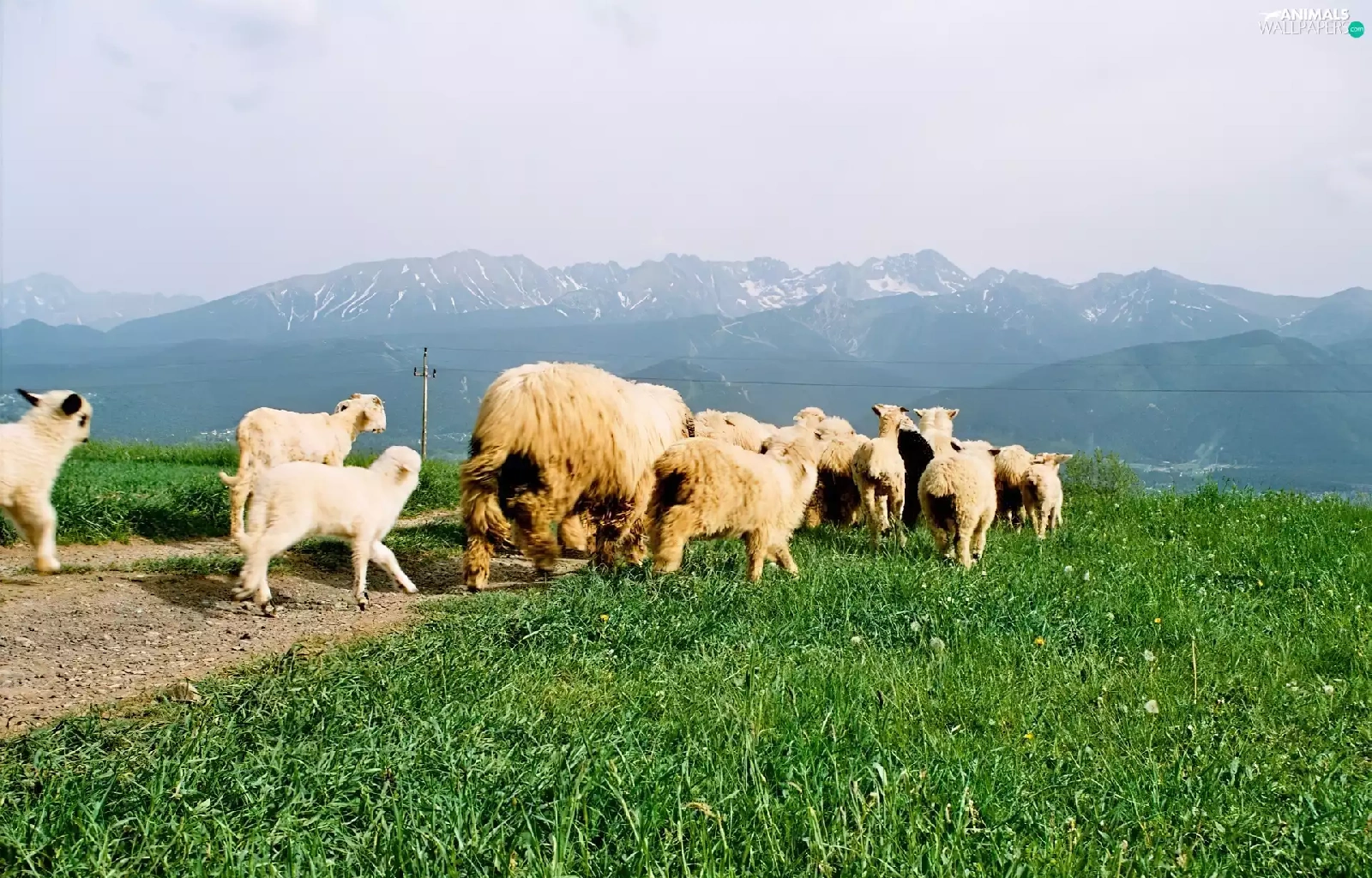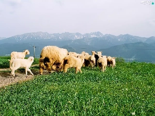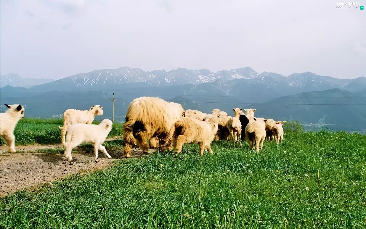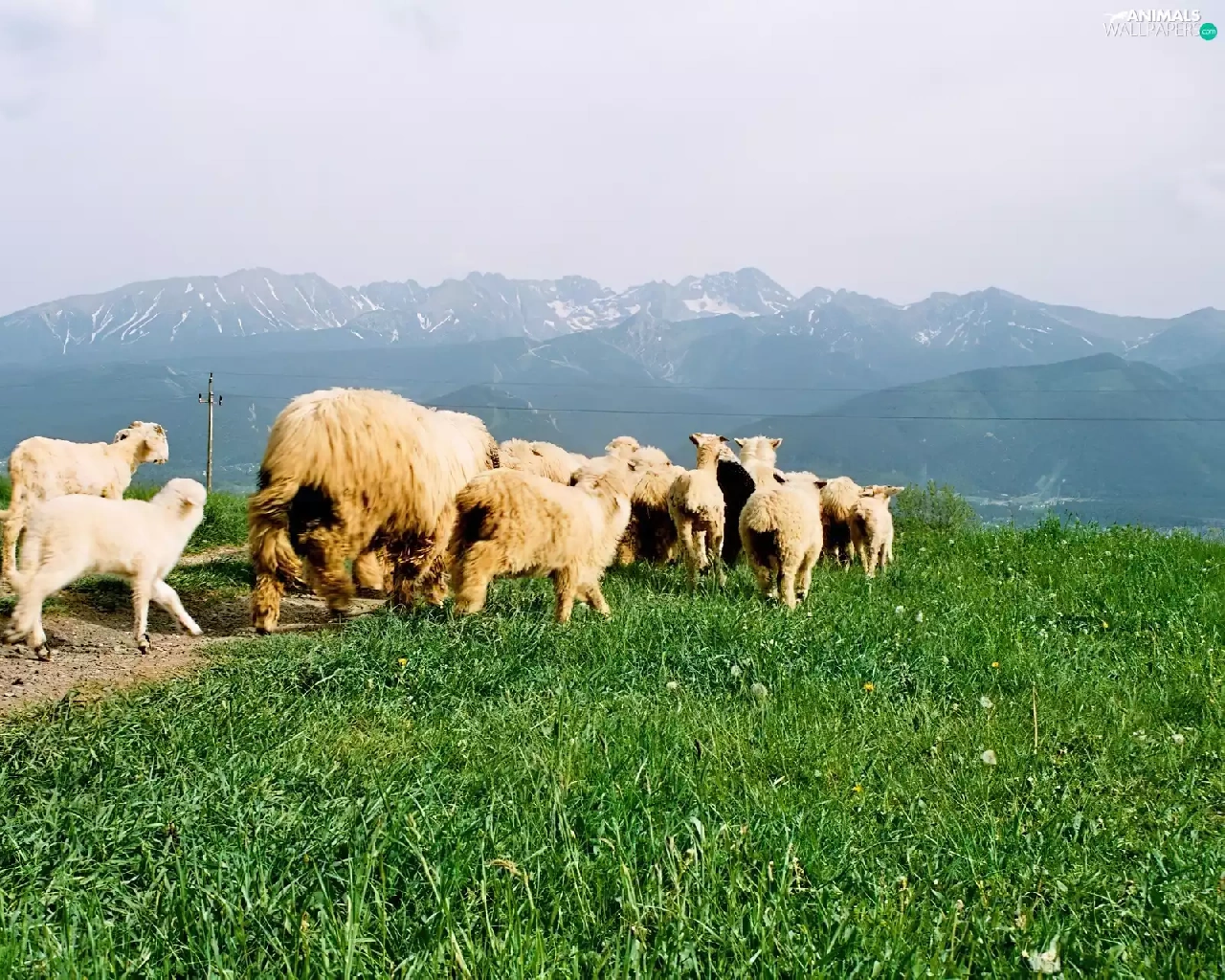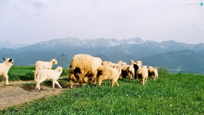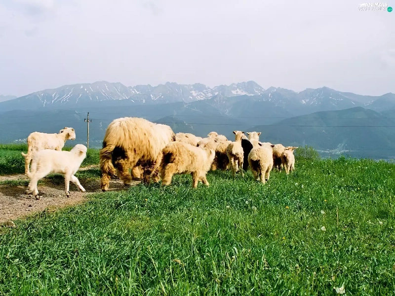 grass, Sheep, Mountains
