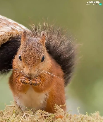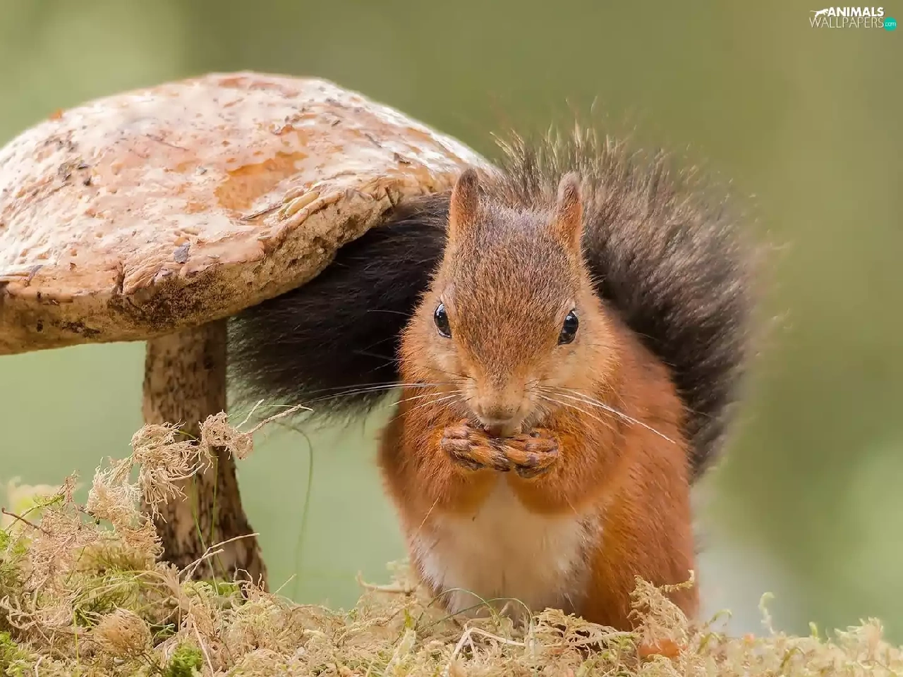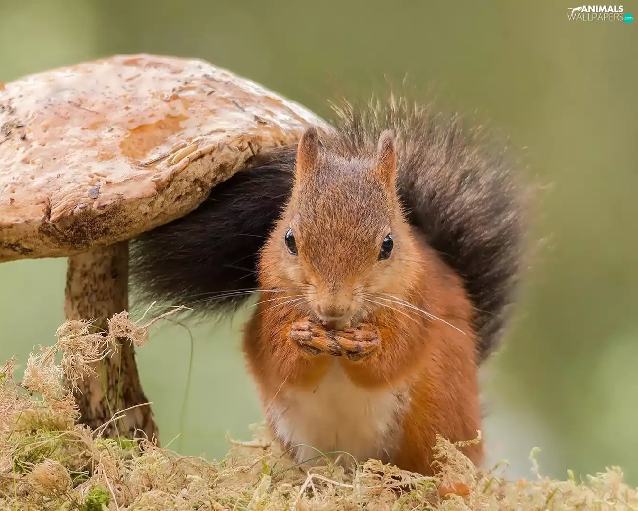 grass, squirrel, Mushrooms