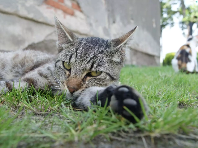 grass, cat, paw