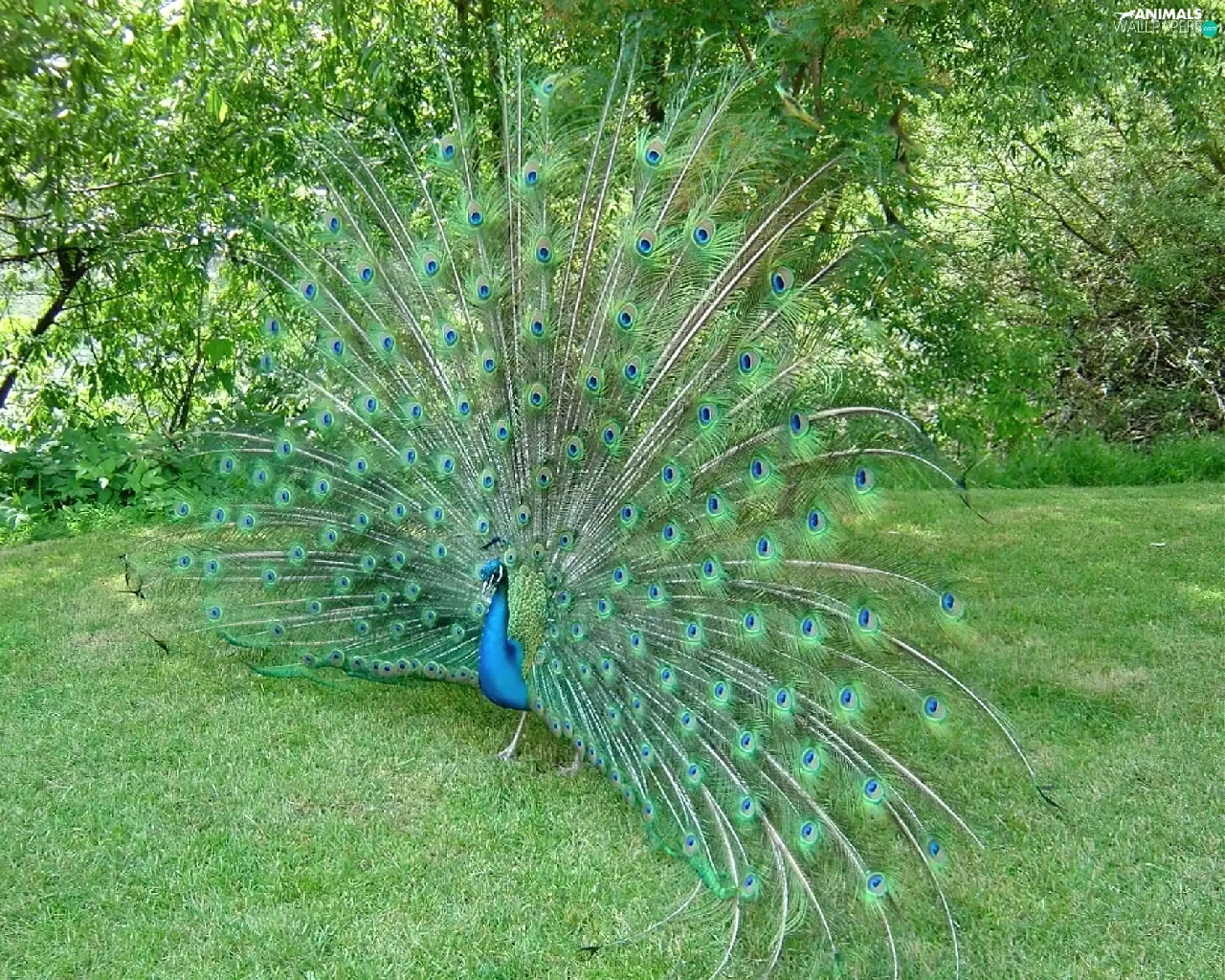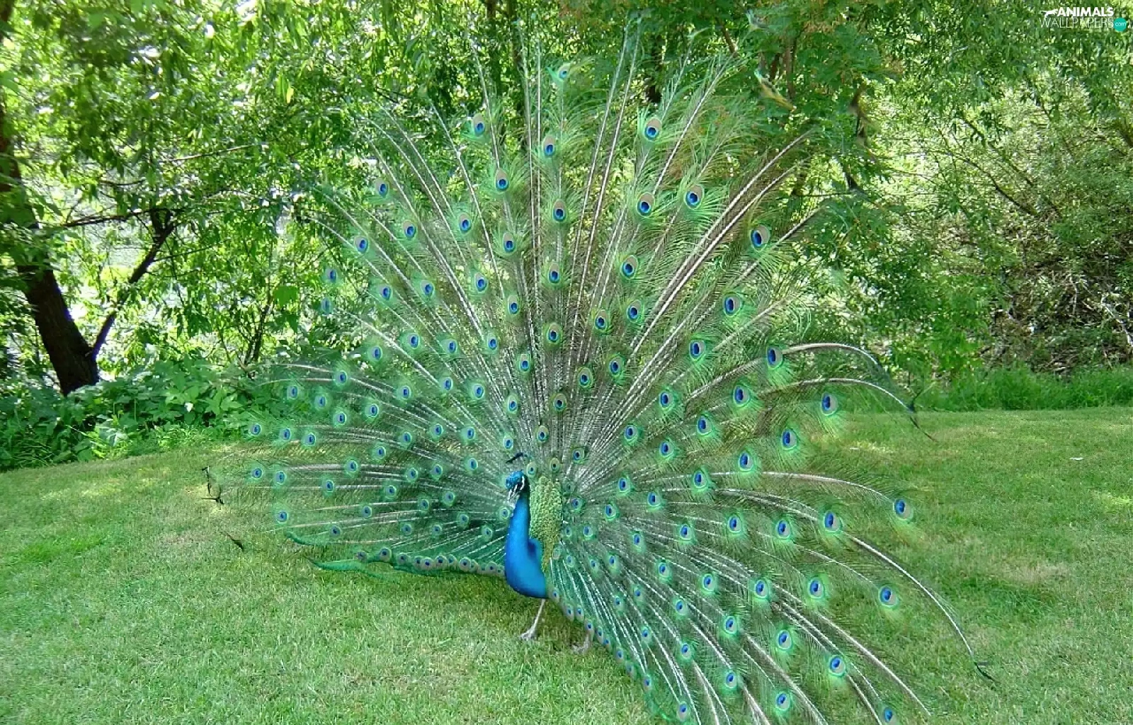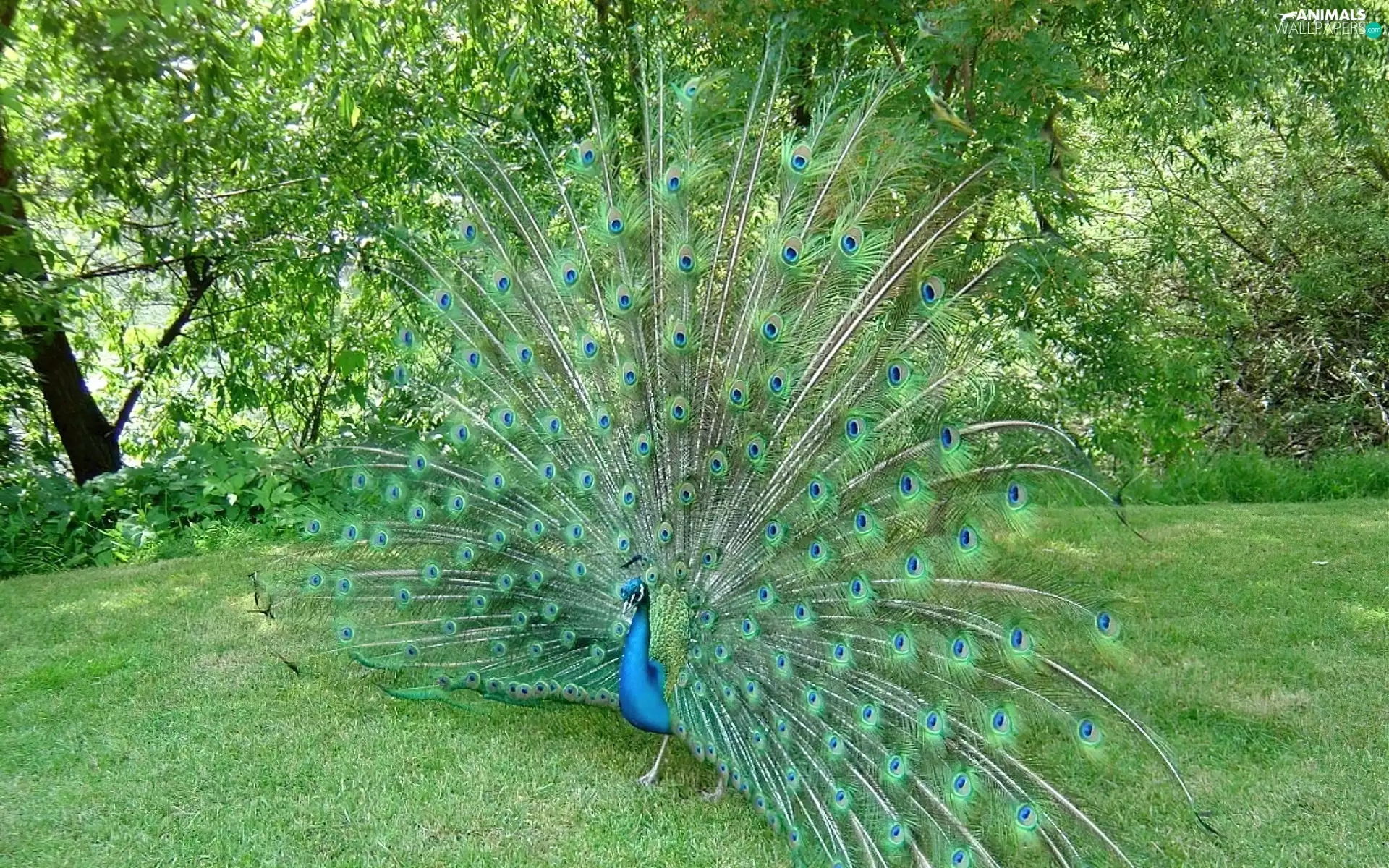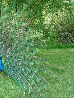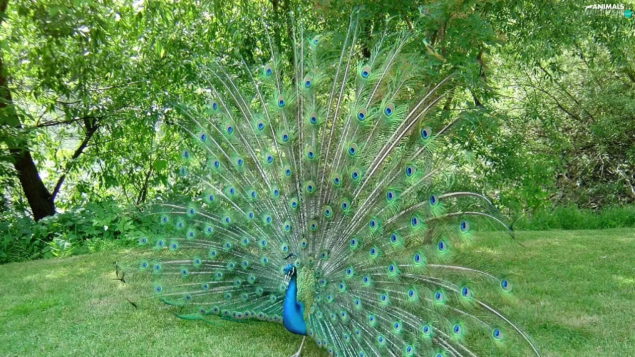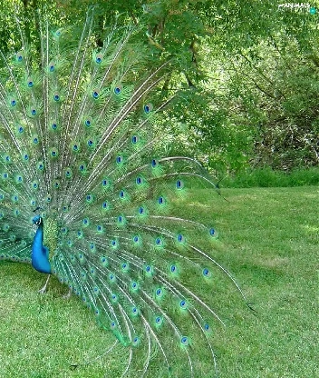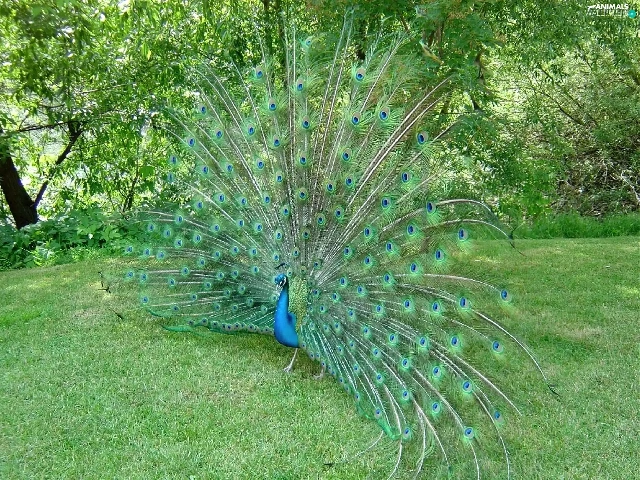 peacock, trees, viewes, grass