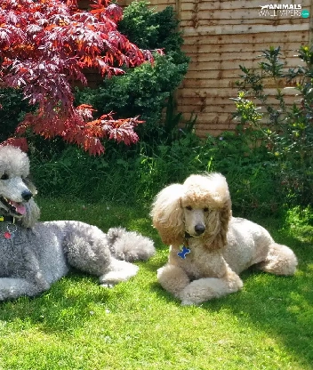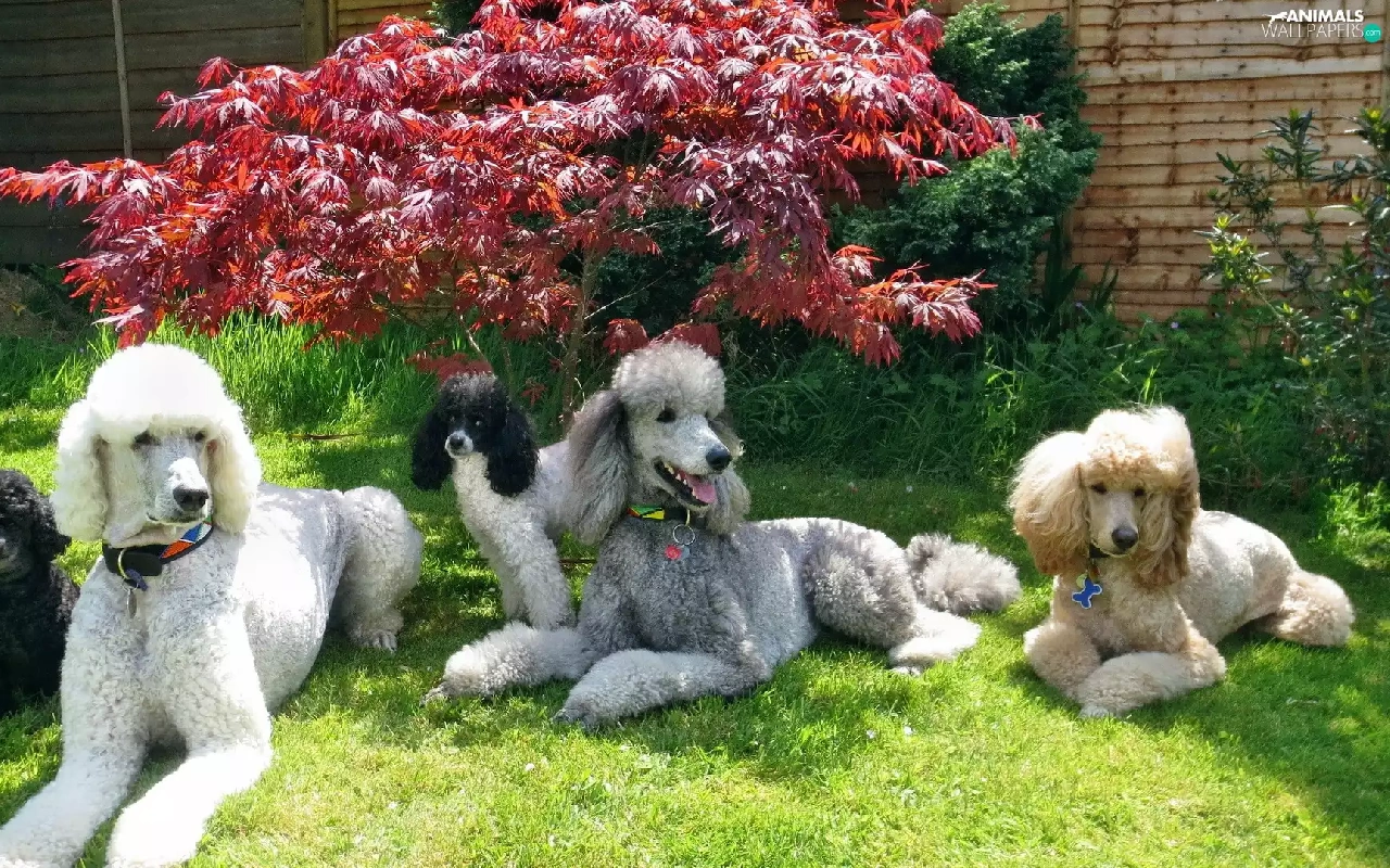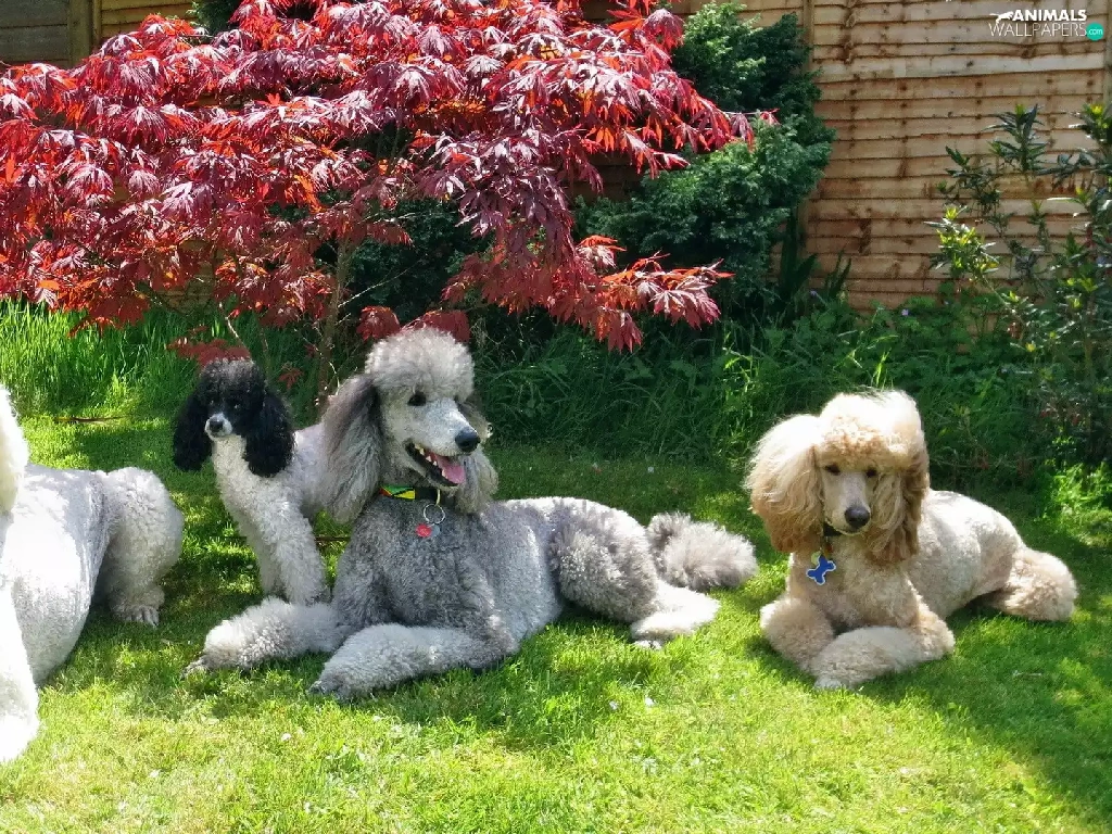 Bush, Dogs, Leaf, grass, Red, Poodles